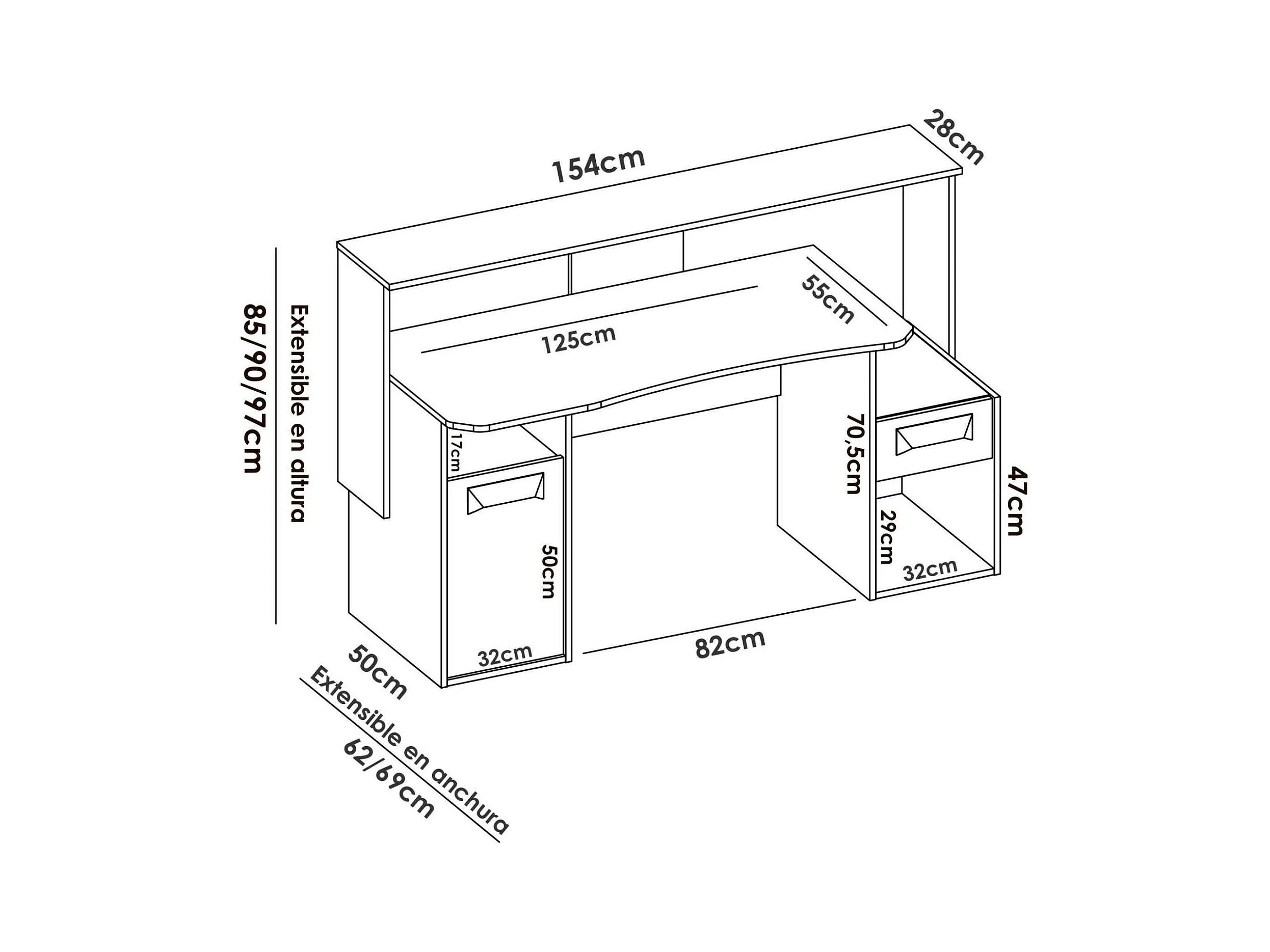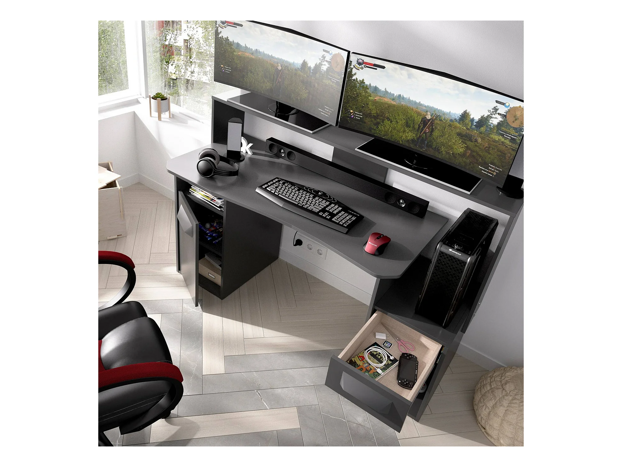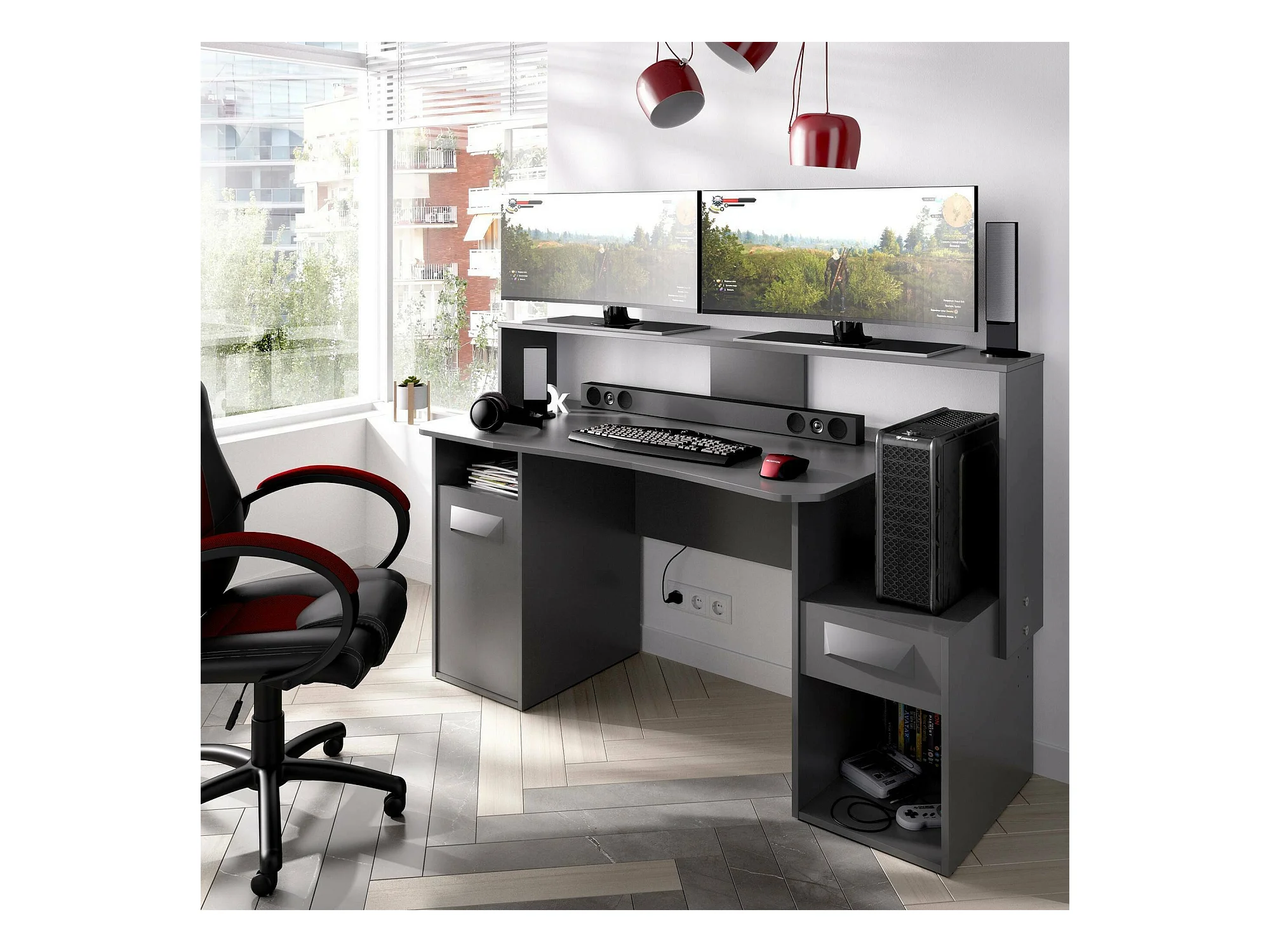Schreibtisch Dgorin, moderner Multifunktions-Gaming-Schreibtisch, Studiertisch für PC und CD-Halter, 154 x 69 x 98 cm, Anthrazit, ohne LED-Leuchten