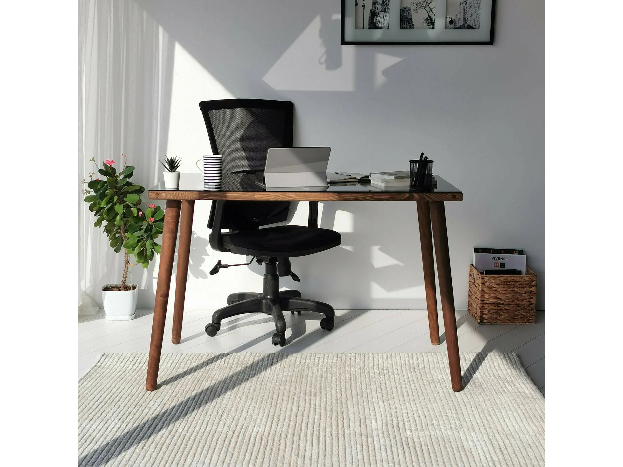 Schreibtisch Dlojacon, Mehrzweckschreibtisch, Bürotisch für PC, Eckschreibtisch, 110x60h73 cm, Nussbaum