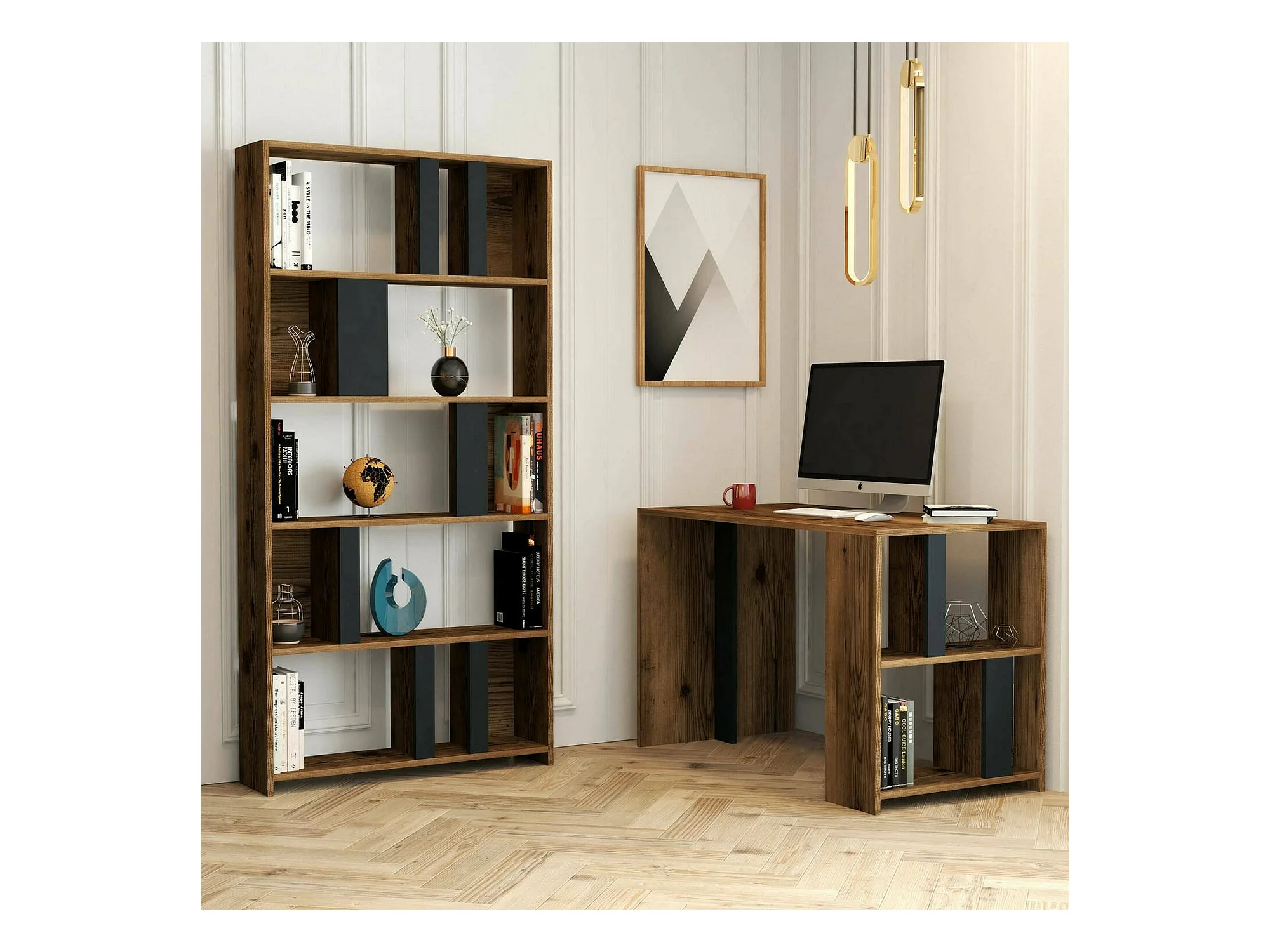 Schreibtisch Dpadalin, Mehrzweckschreibtisch, Bürotisch für PC, Eckschreibtisch, 120x60h75 cm, Walnuss und Anthrazit