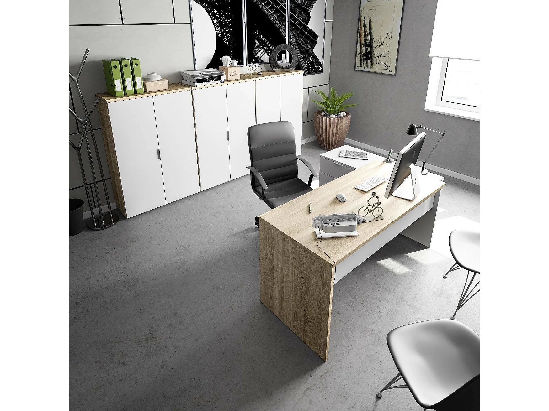 Schreibtisch Dafage, Wendeschreibtisch mit Kommode, Eckstudie oder Büro-PC-Tisch, 145x108h73 cm, Eiche und Weiß