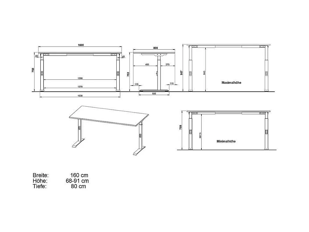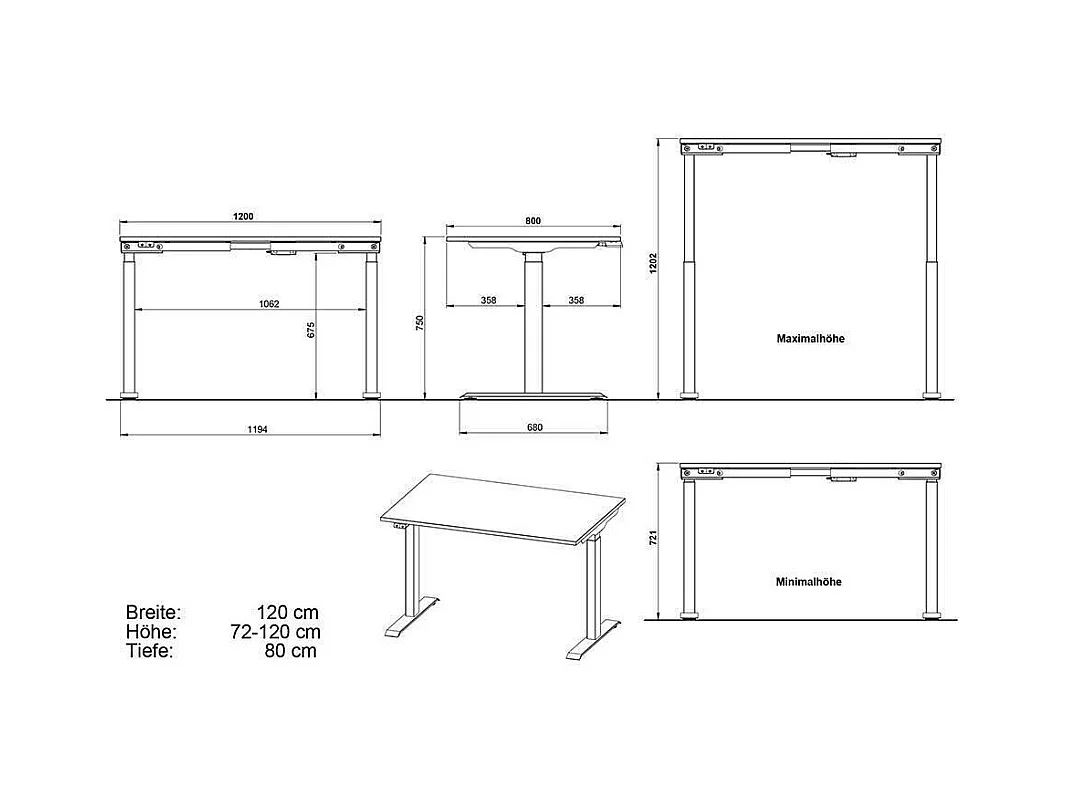 Schreibtisch Höhenverstellbarer Schreibtisch in Weiß und Silberfarben