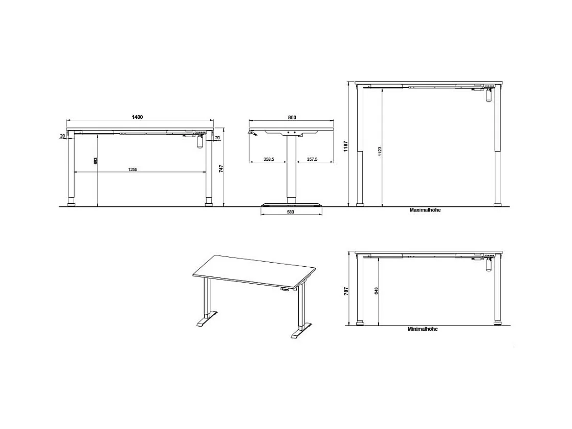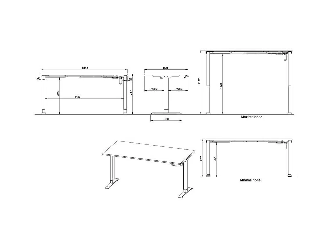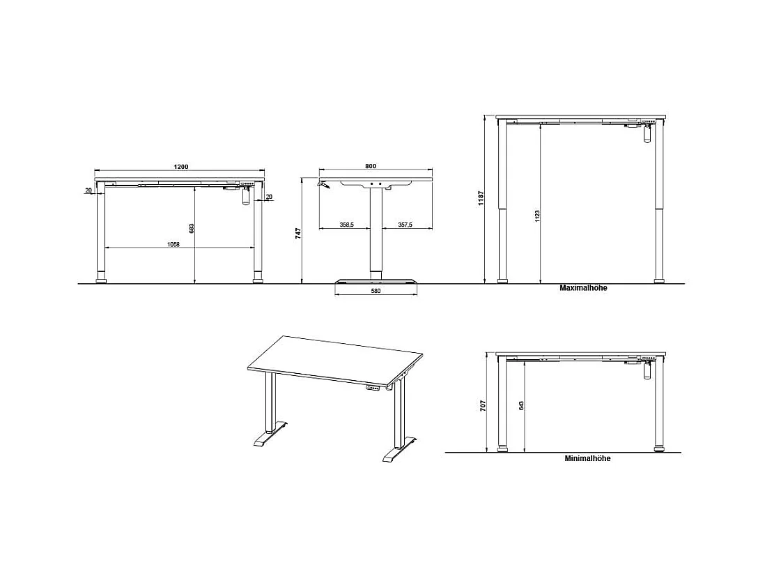 Schreibtisch Höhenverstellbarer Schreibtisch in Wildeichefarben und Schwarz