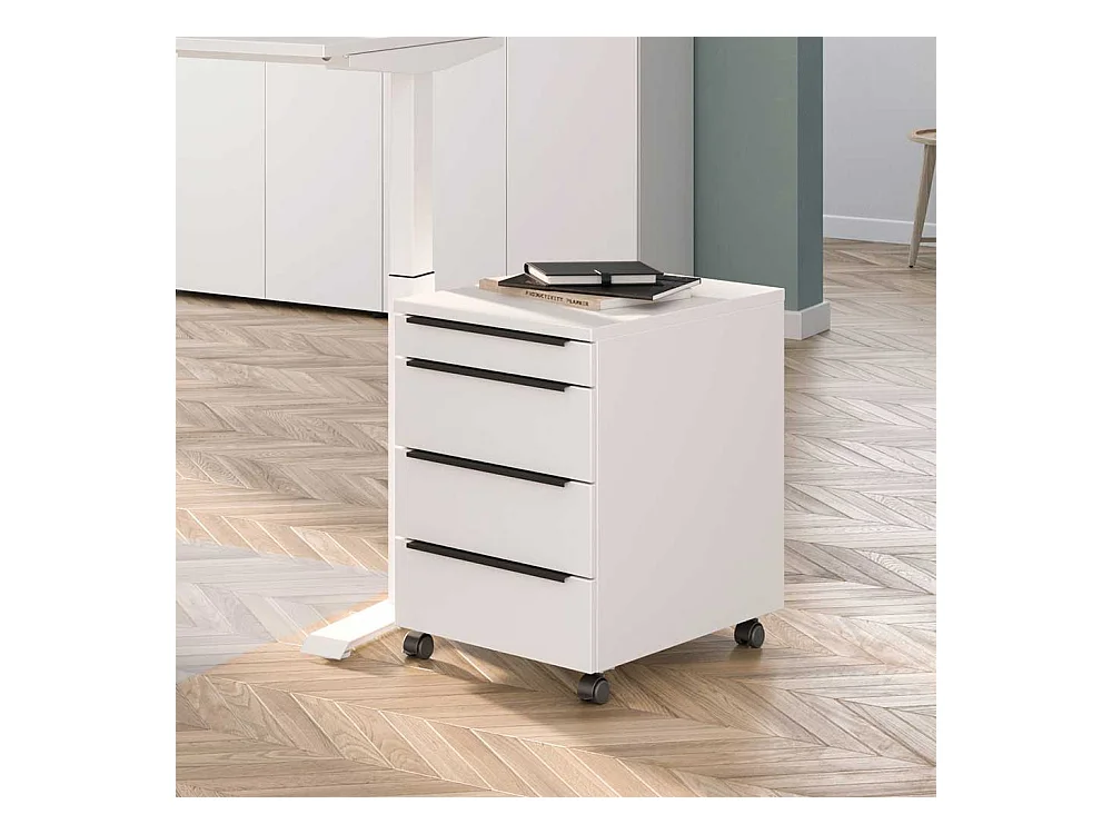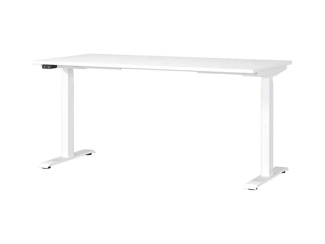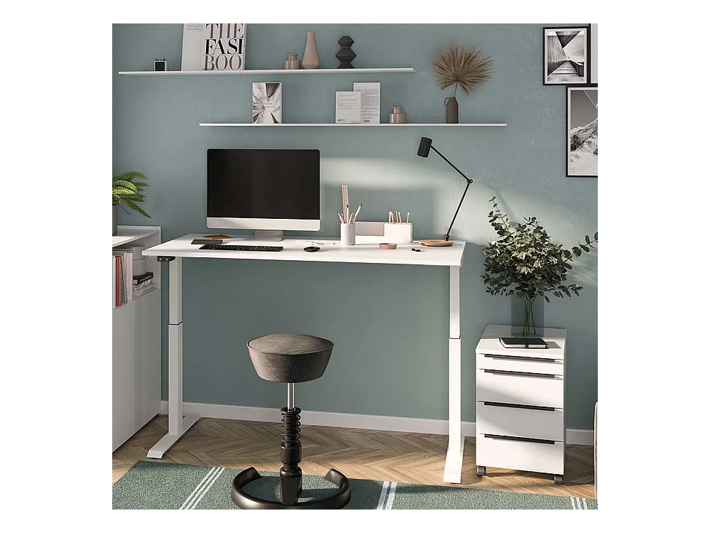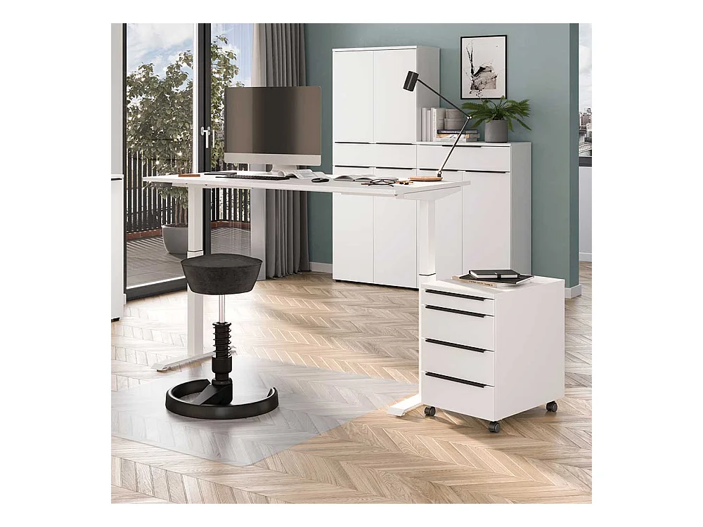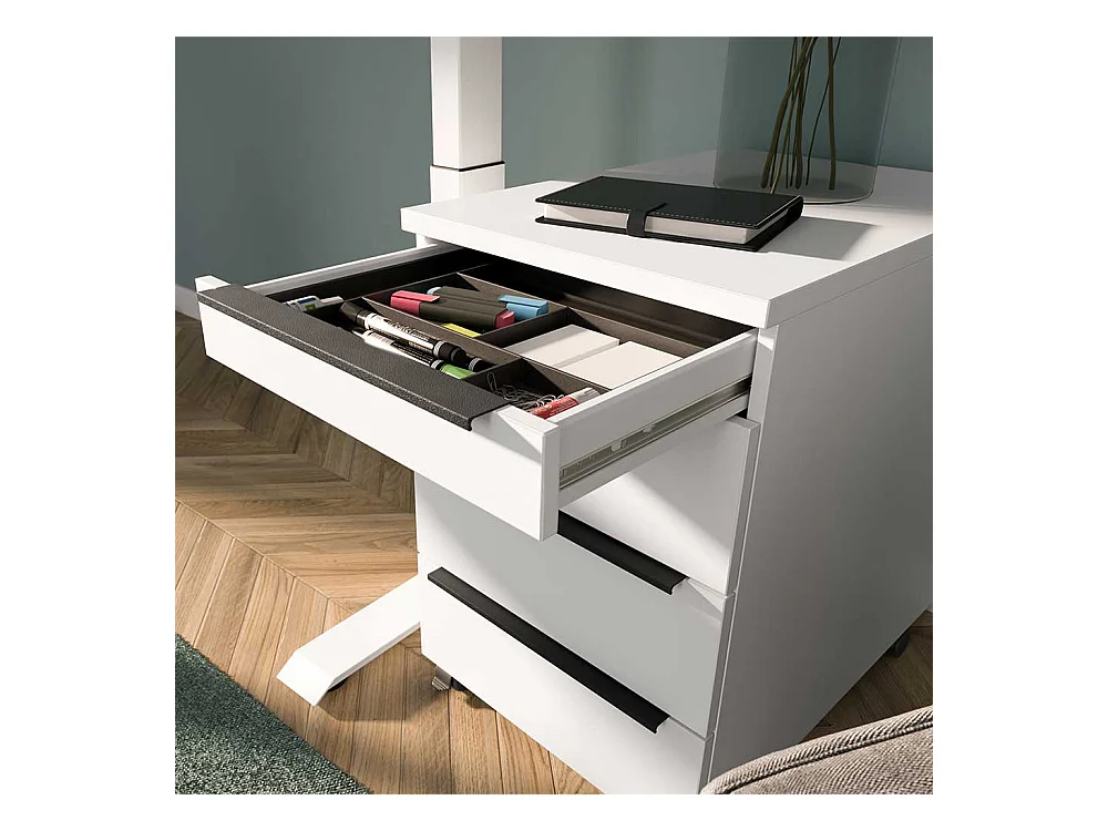 Schreibtisch höhenverstellbarer Schreibtisch mit Rollcontainer in Weiß (zweiteilig)
