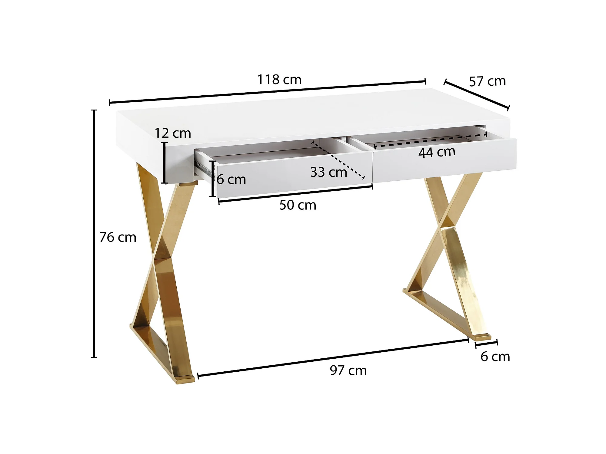 Schreibtisch Hochglanz Weiß Gold 118 cm Holz Computertisch Tisch Büro