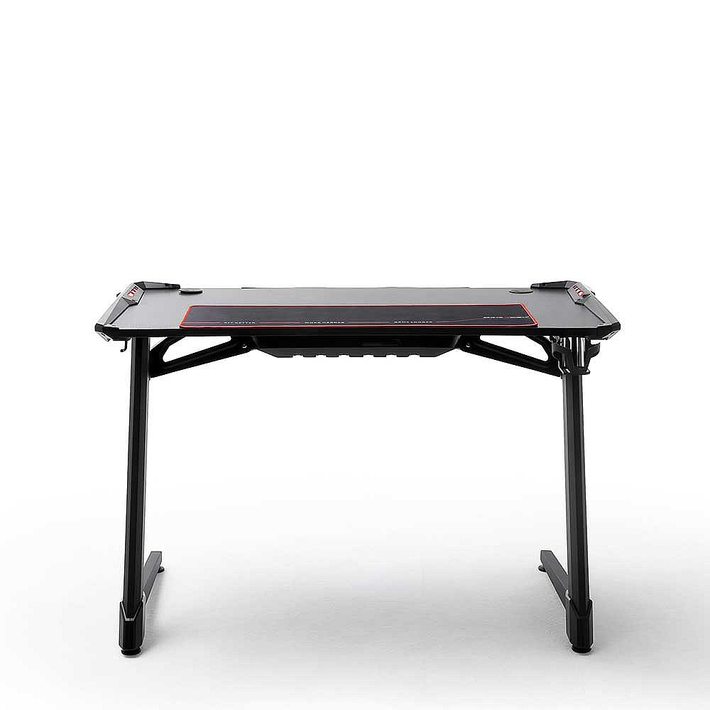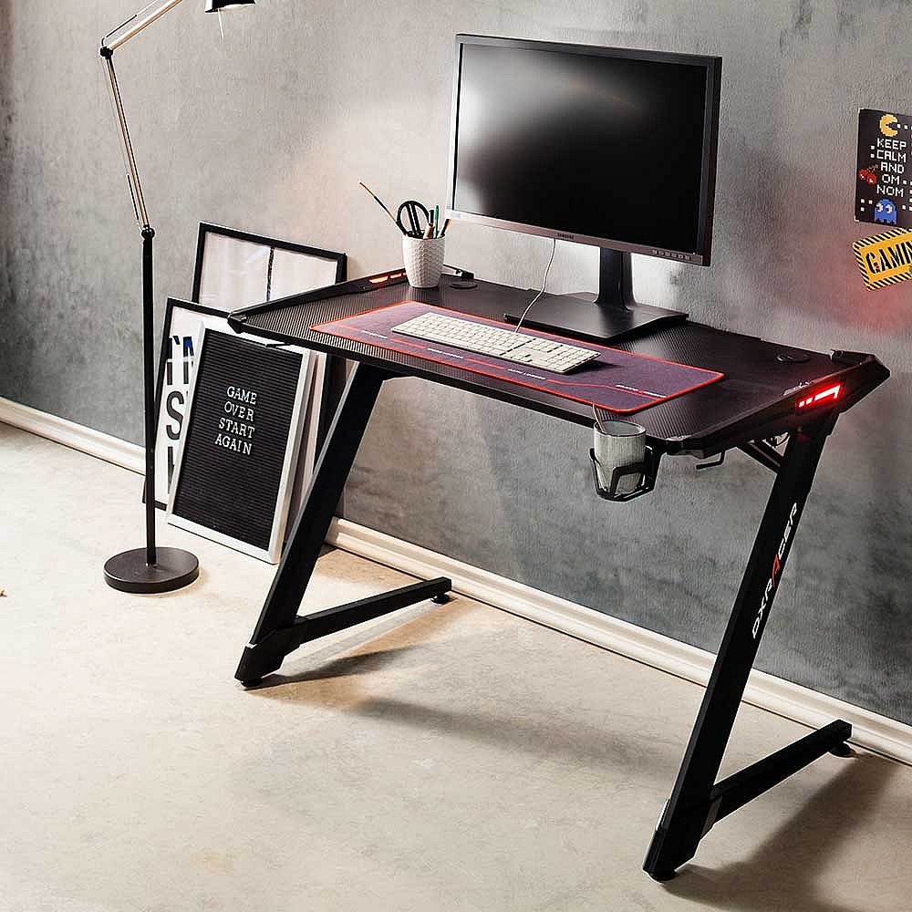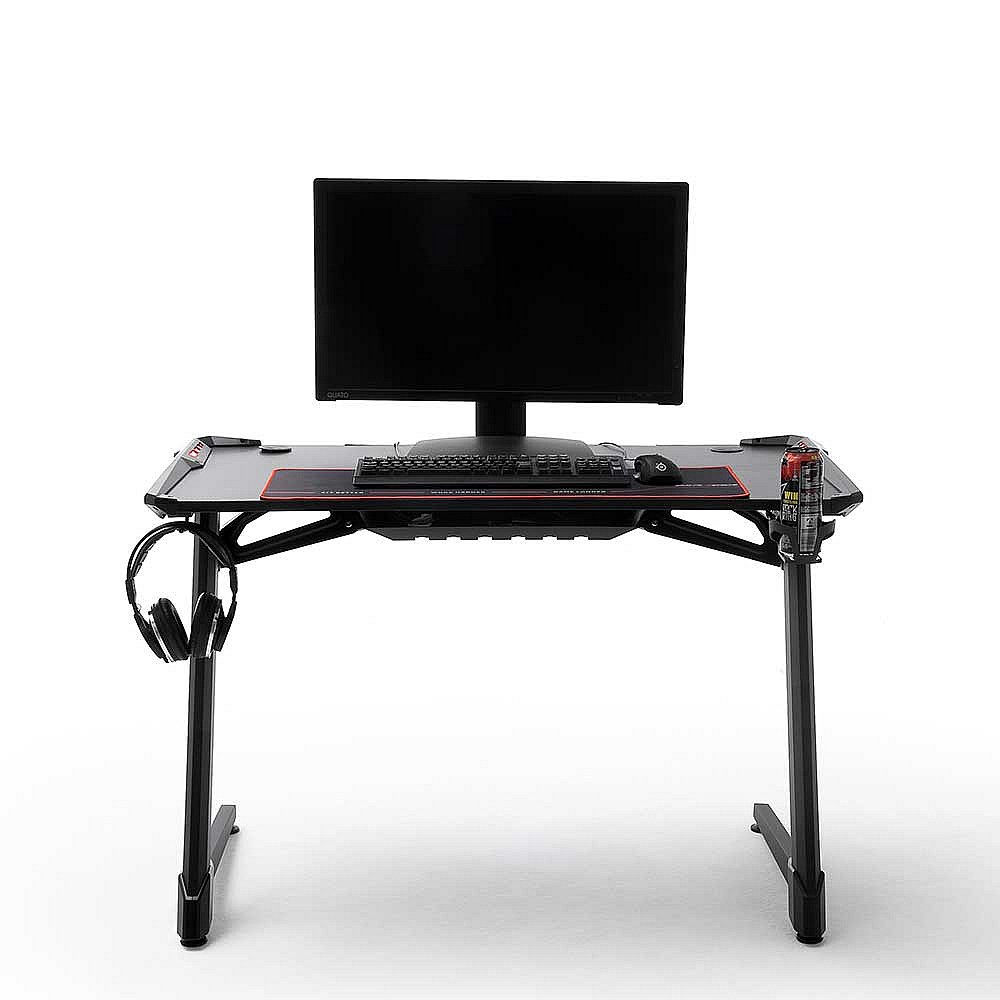 Schreibtisch in Schwarz LED Beleuchtung und Kabeldurchlass