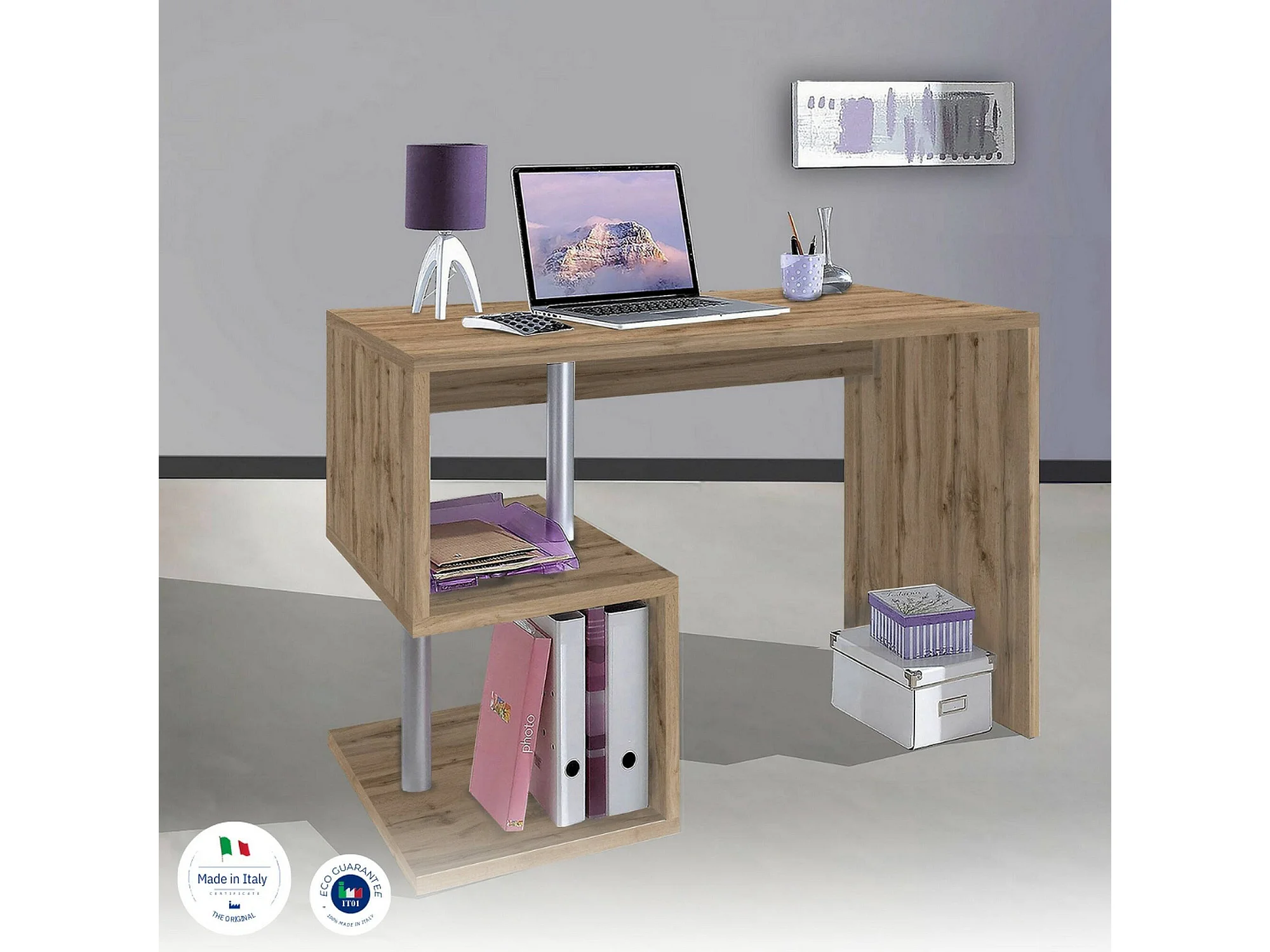Dmora Schreibtisch max. 100x50x78h cm Braun 2 Regale, Modul
