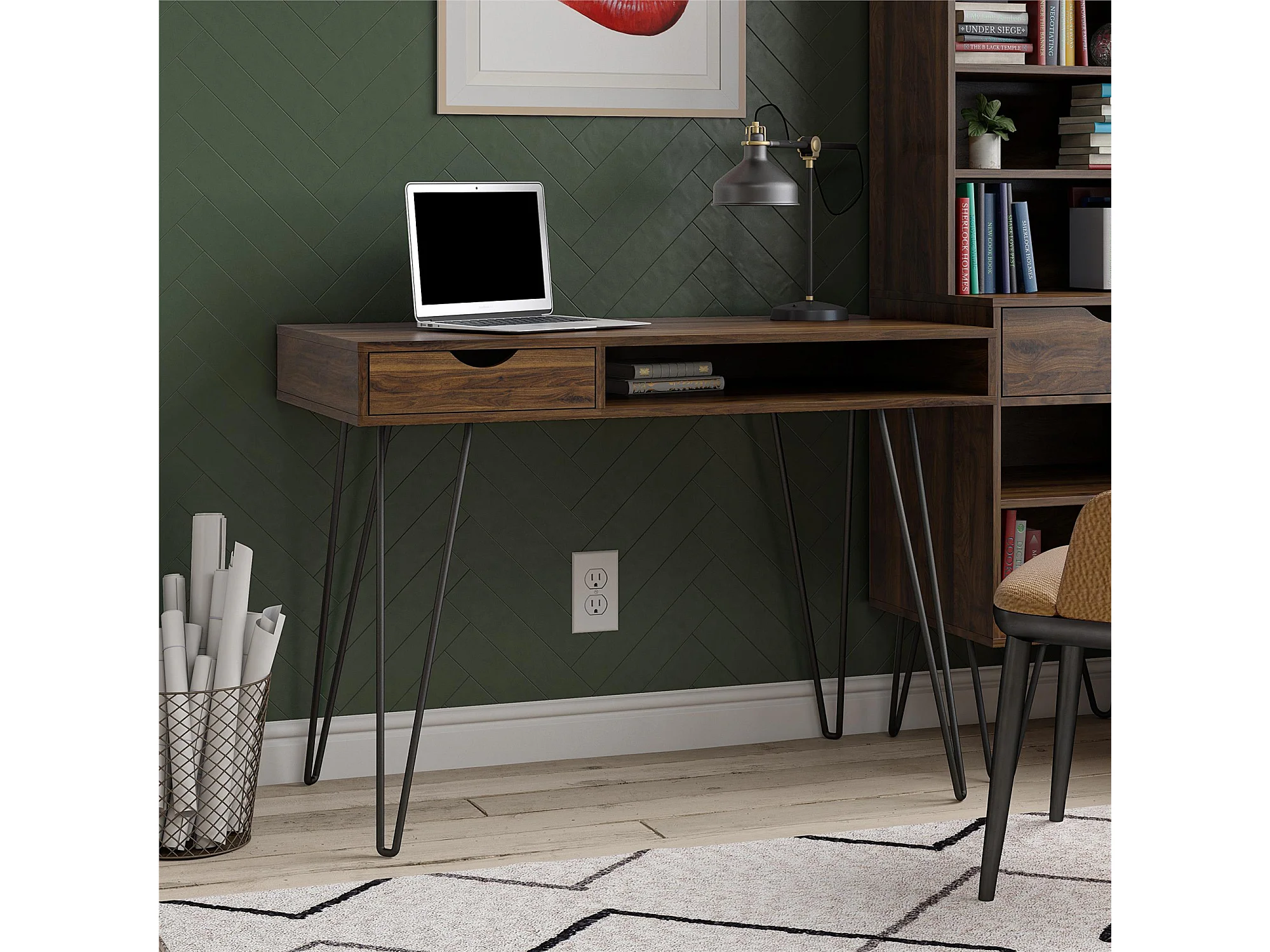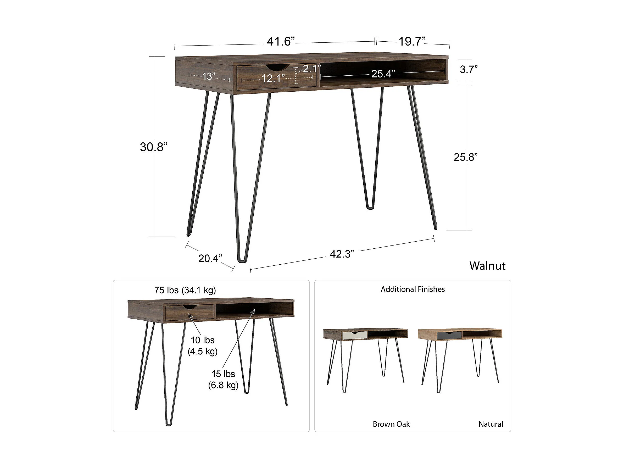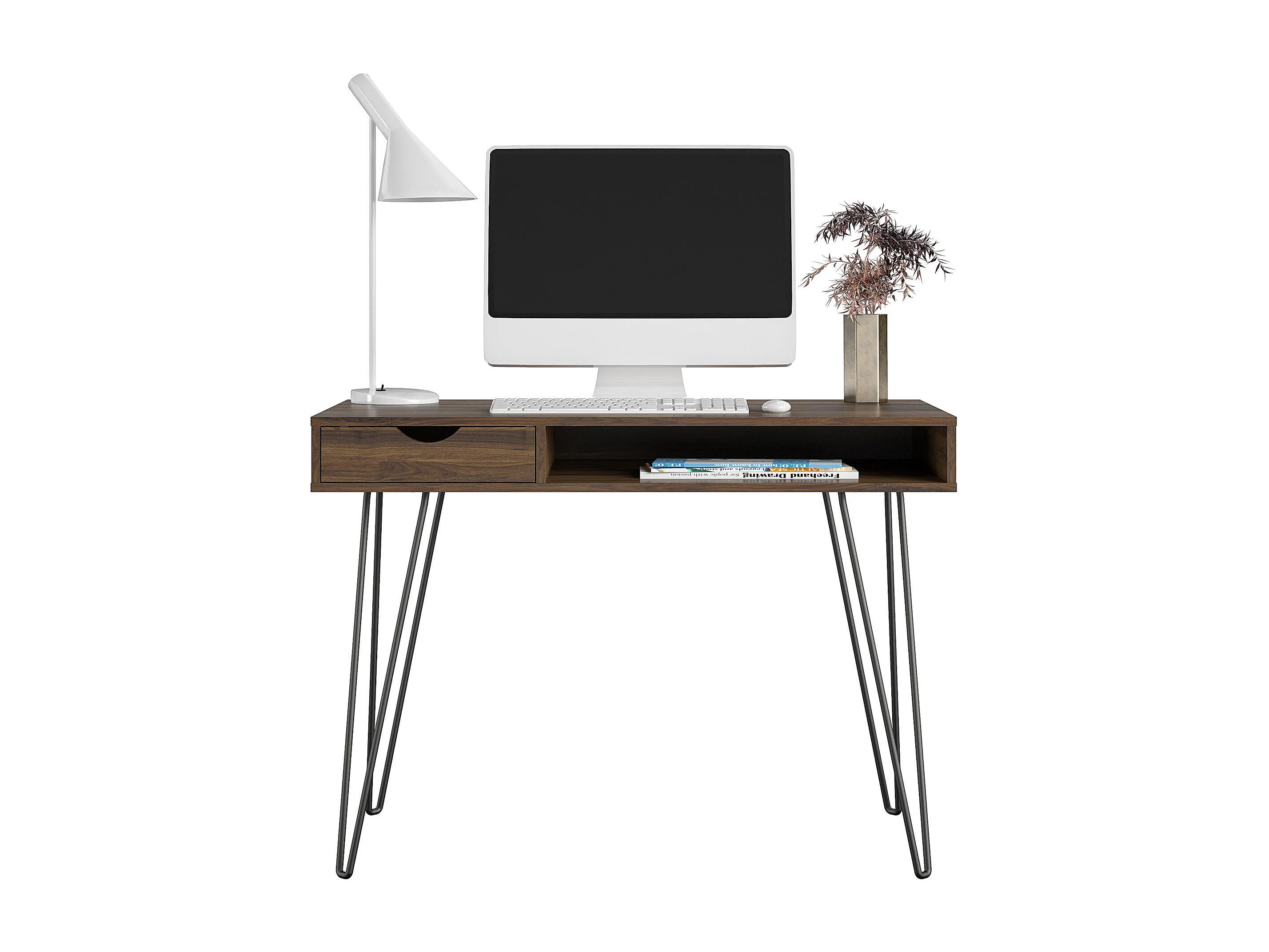 Schreibtisch mit 1 Schublade aus HDF, Walnuss
