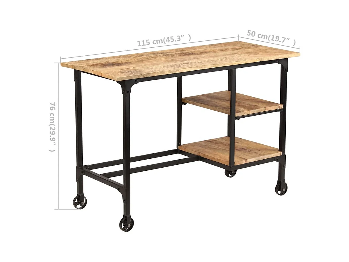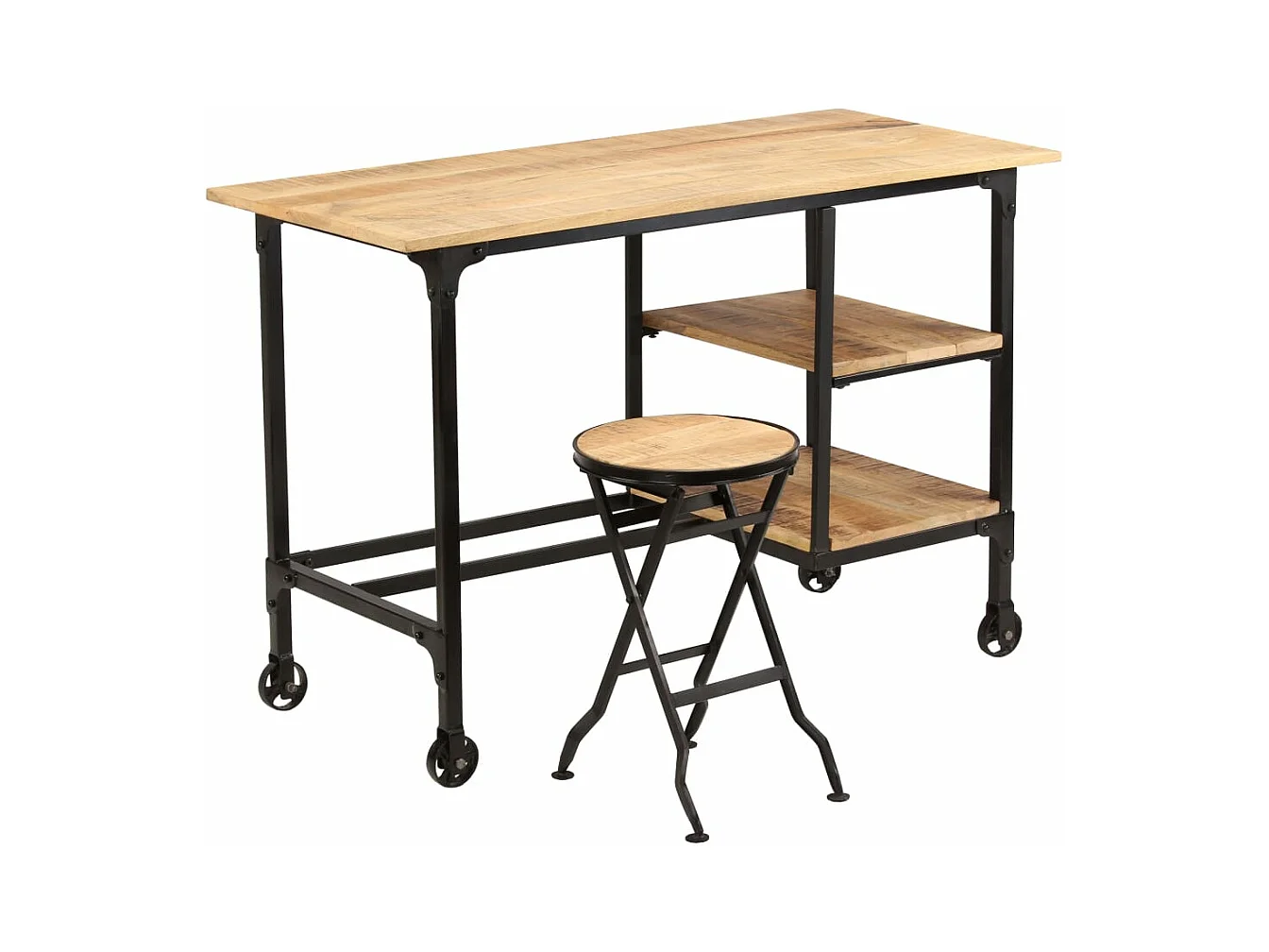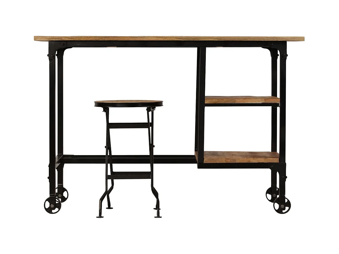Schreibtisch mit Klapphocker Mangoholz Massiv 115x50x76 cm