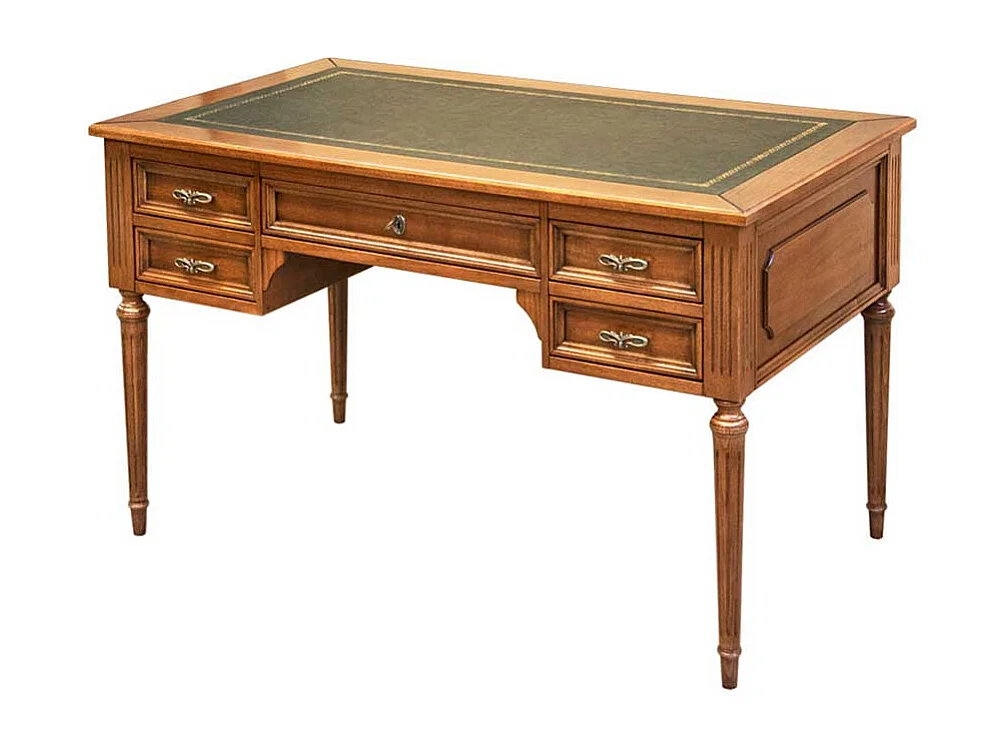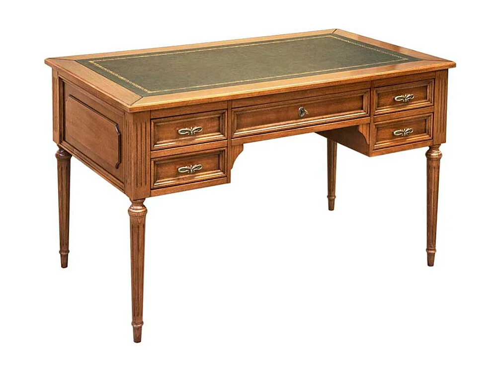 Schreibtisch mit Lederauflage in Nussbaumfarben 130 cm breit
