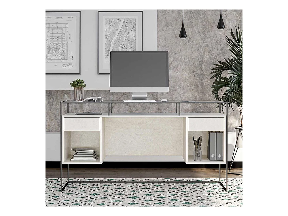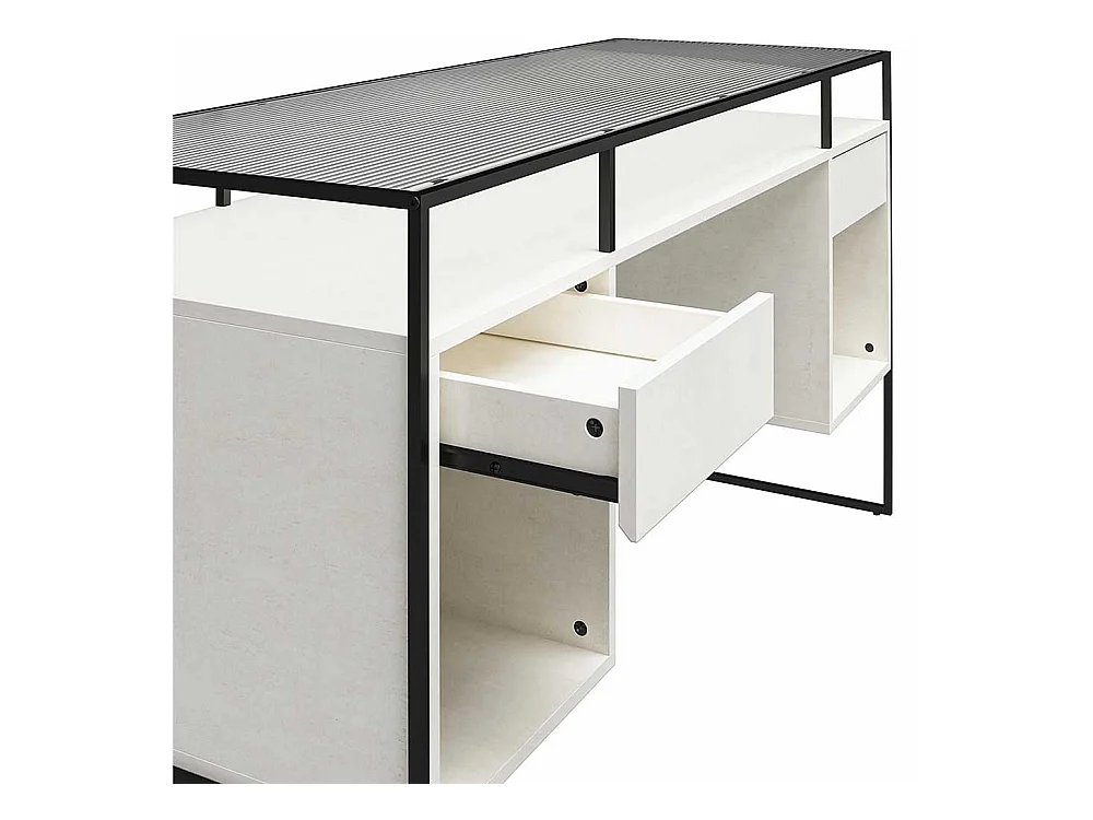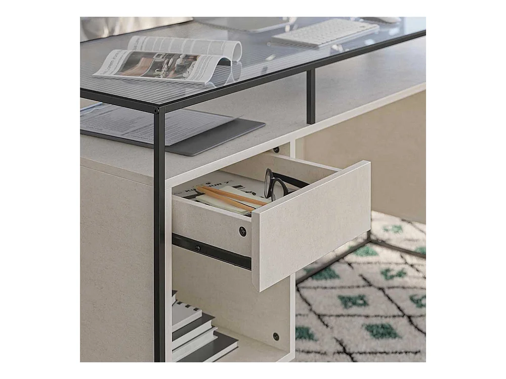 Schreibtisch mit Seitenregalen in Lichtgrau und Schwarz Strukturglasplatte