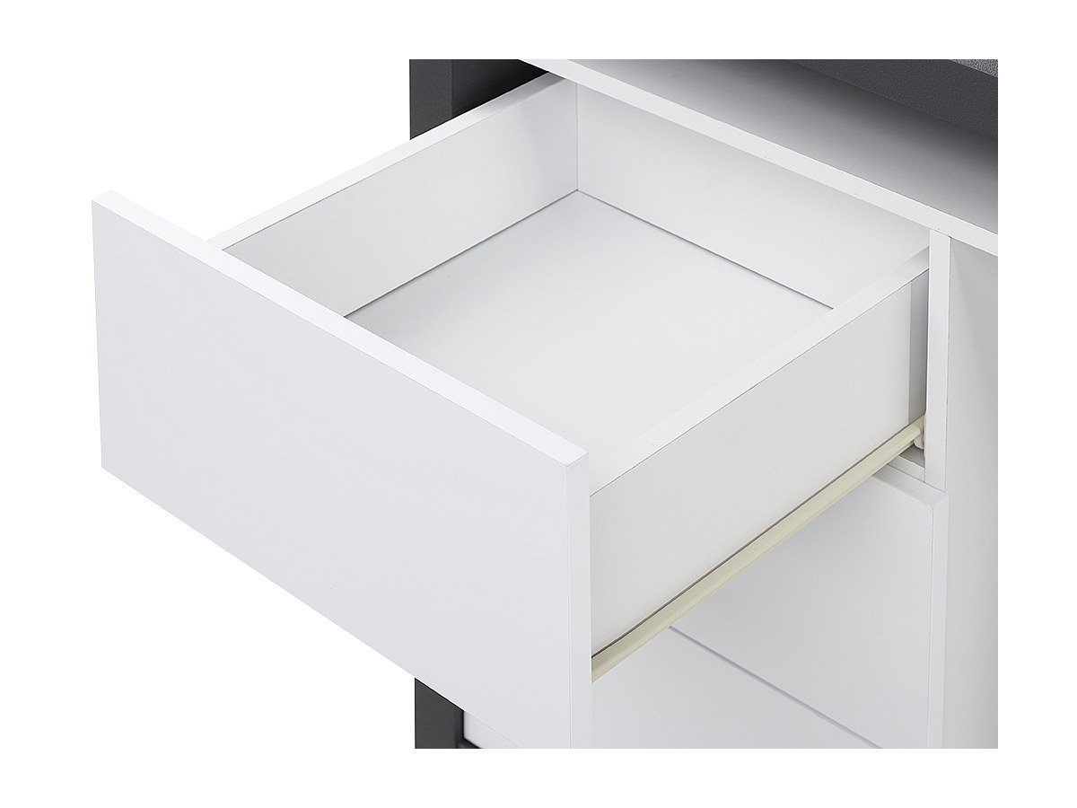 - Extra: 3 Schubladen, 1 große Ablage und 1 Tür mit 2 Fächern