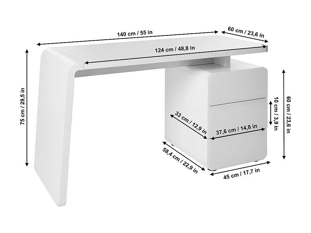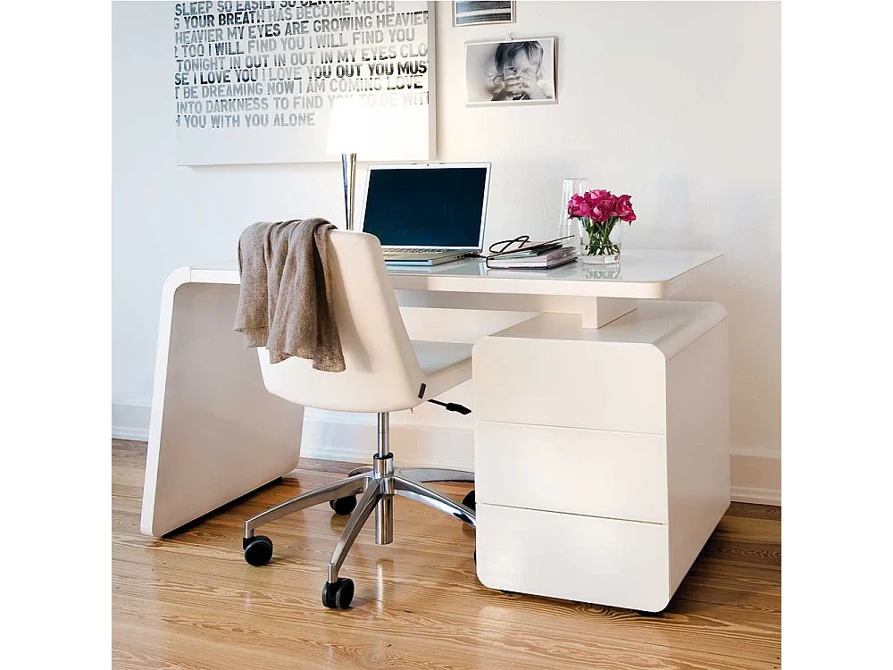 Schreibtisch mit Weiß Glas Stauraum