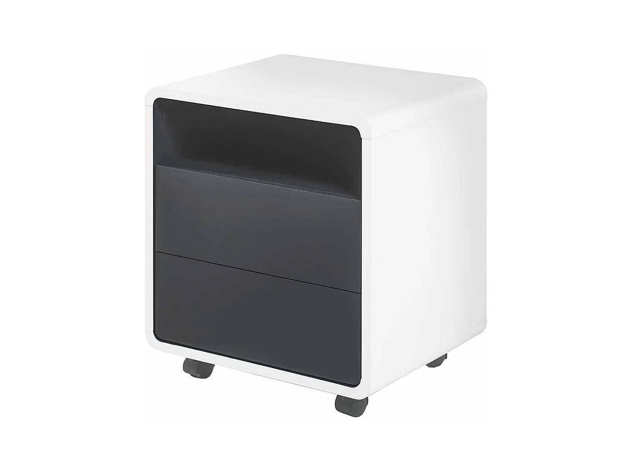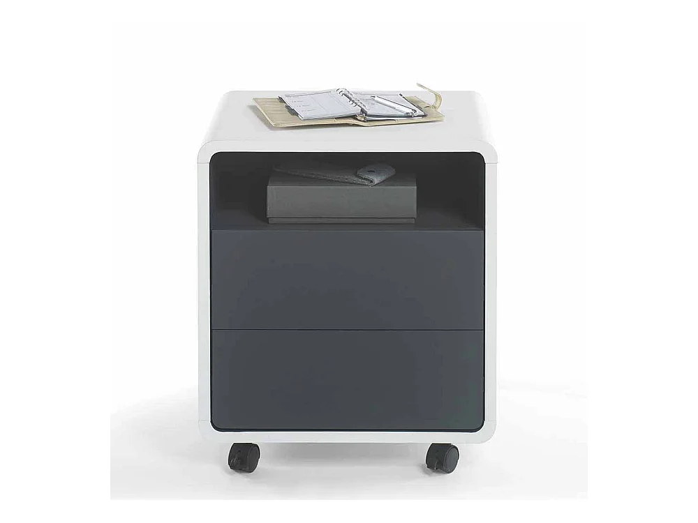 Schreibtisch Rollcontainer in Weiß Anthrazit mit offenem Fach