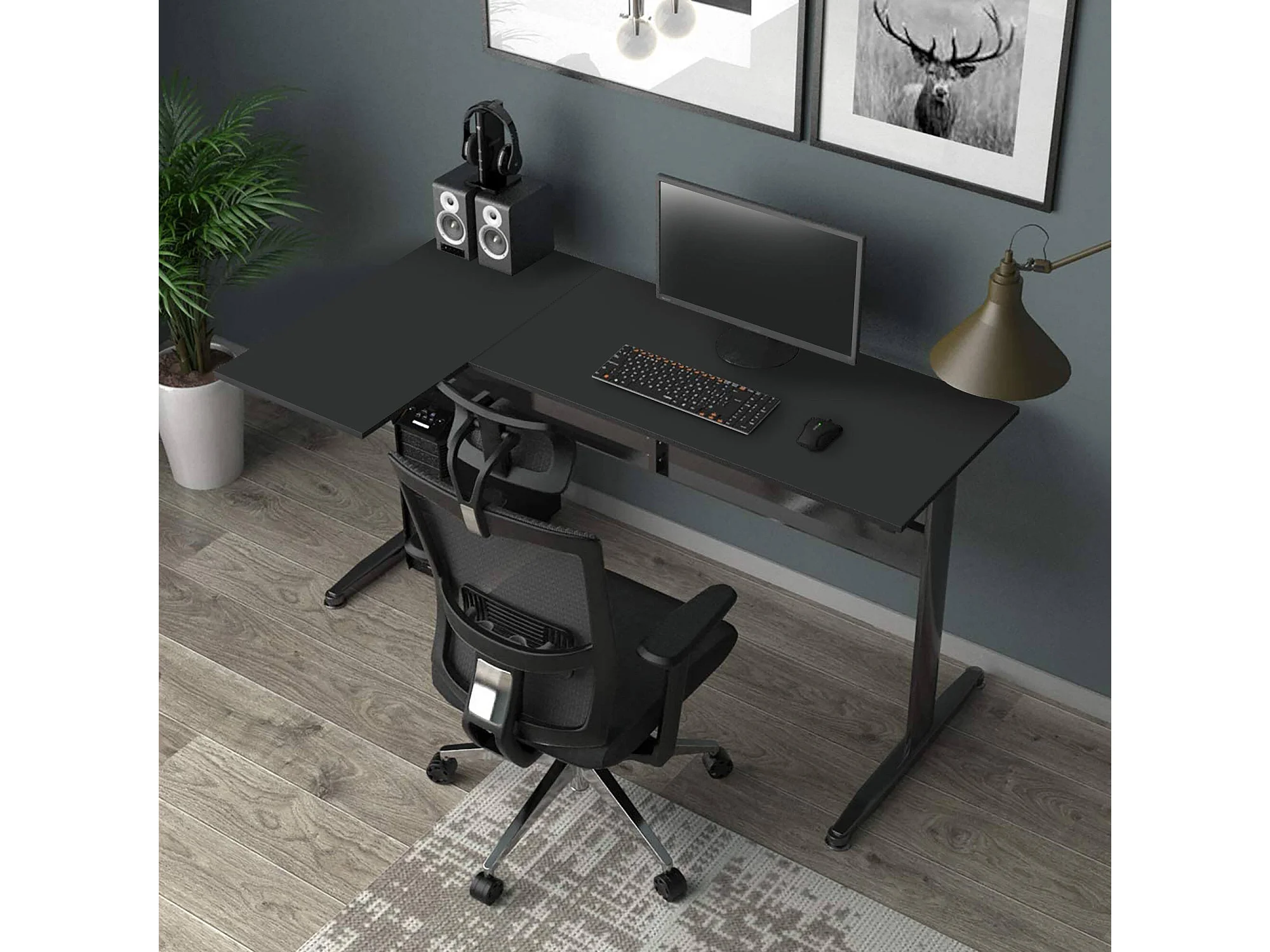 Schreibtisch Rute, Eckschreibtisch, Mehrzweck-Büroschreibtisch, fester platzsparender Schreibtisch, 80x140h75 cm, Schwarz