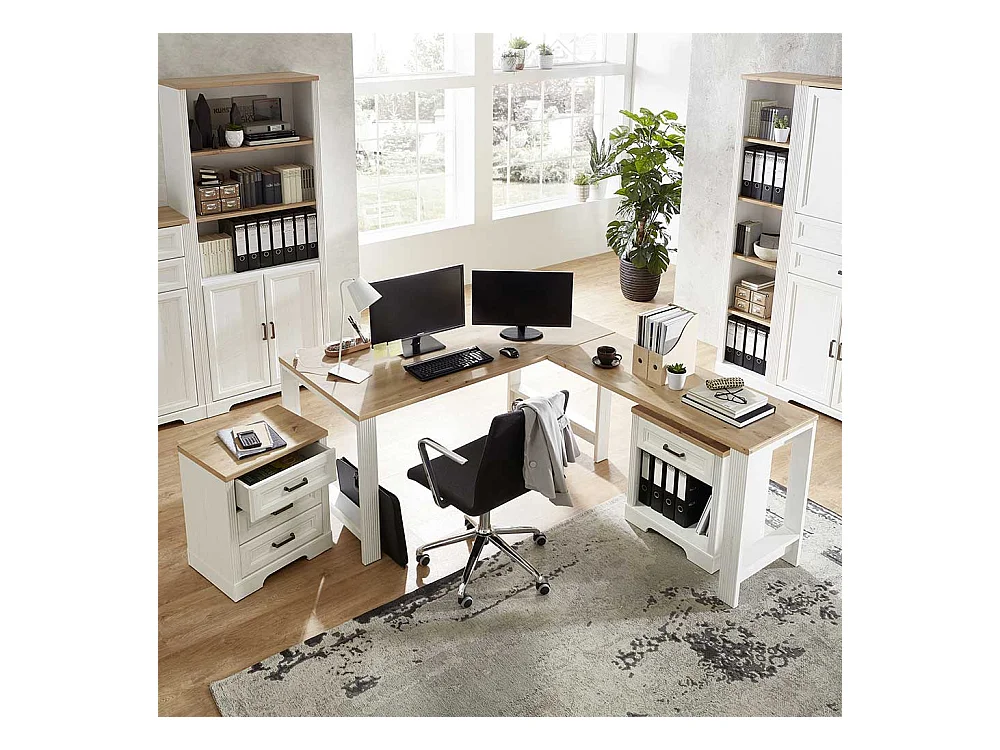 Schreibtisch Set im Landhausstil Weiß & Eichefarben (dreiteilig)