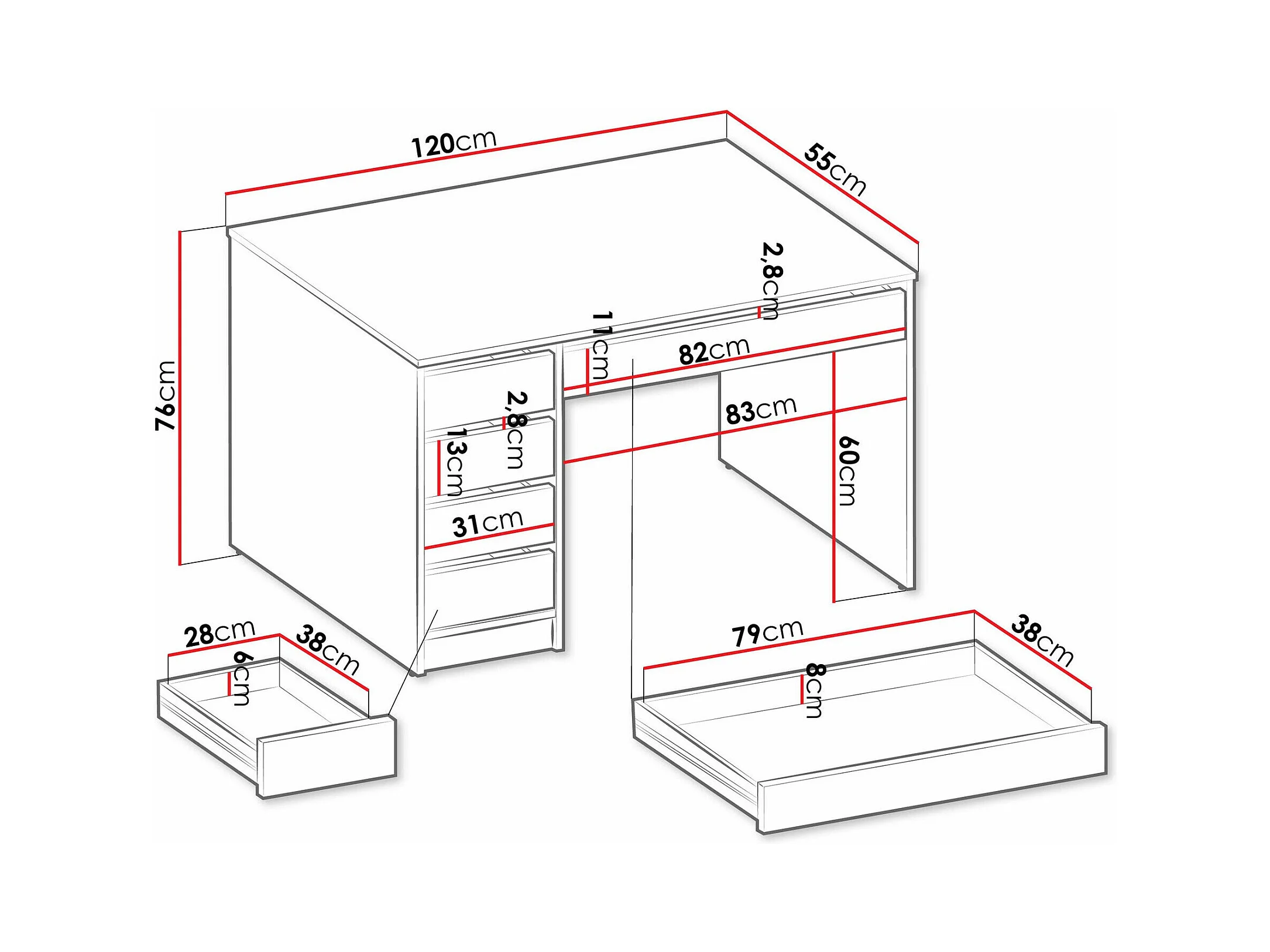 Schreibtisch Comfivo 312 mit 5 Schubladen 76x120x55cm Eiche Handwerker
