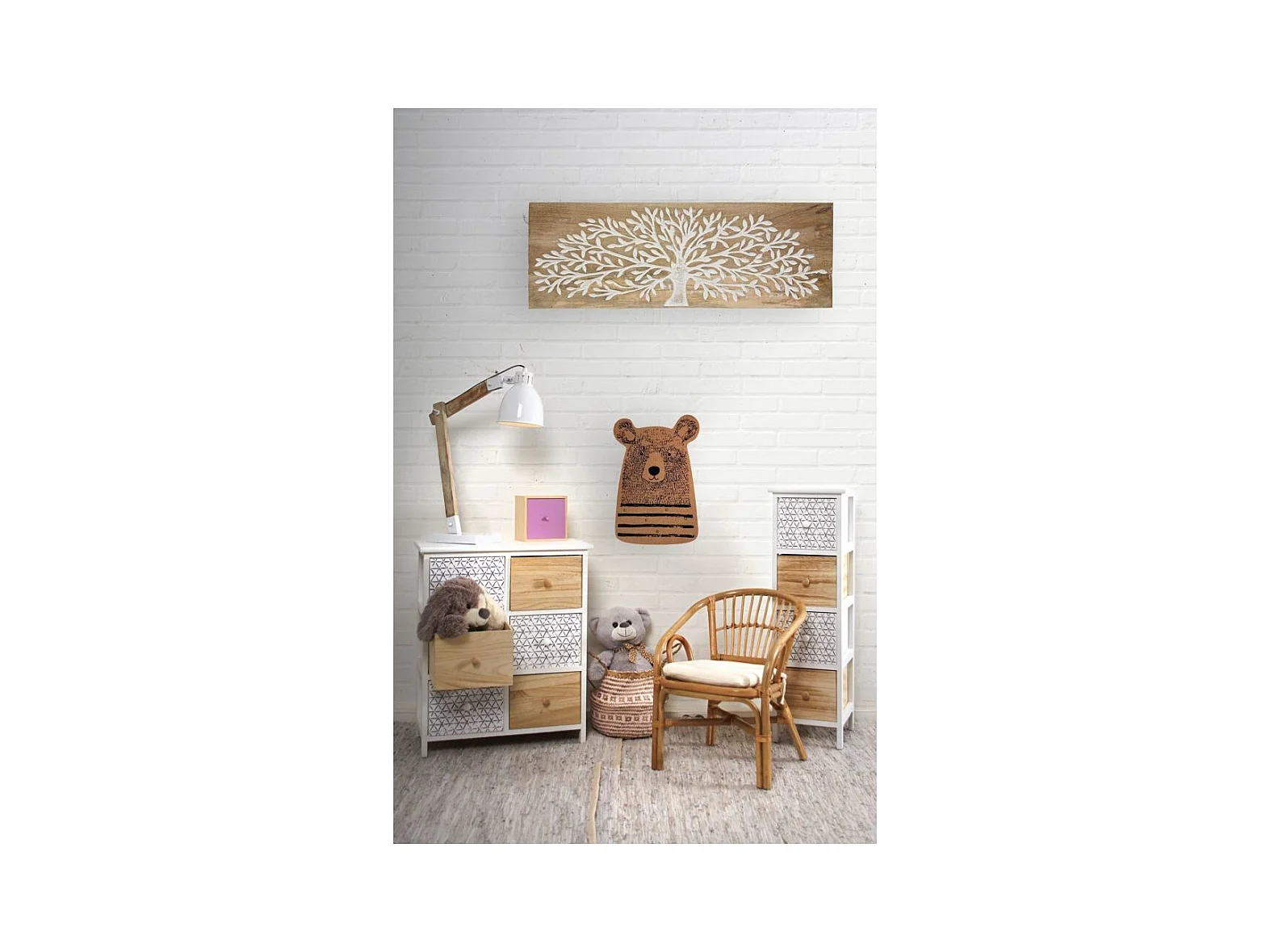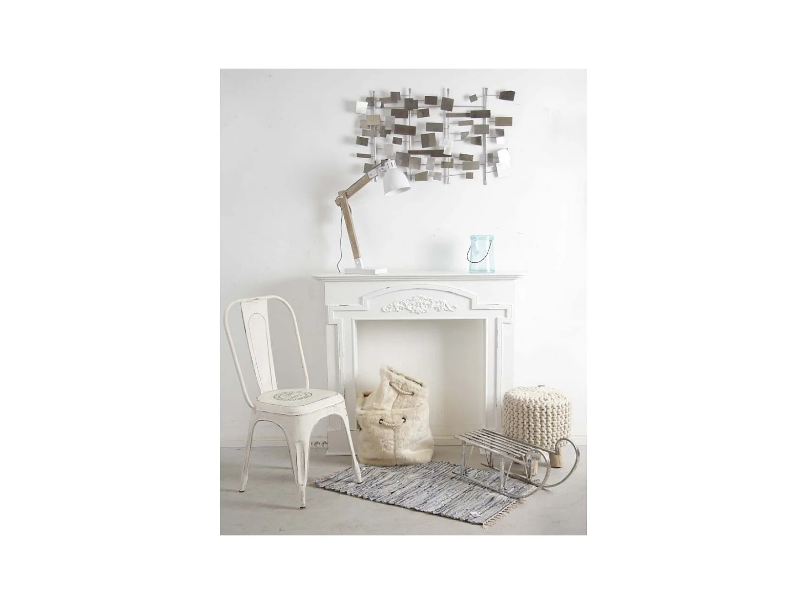 Schreibtischleuchte aus weißem Metall und Holz