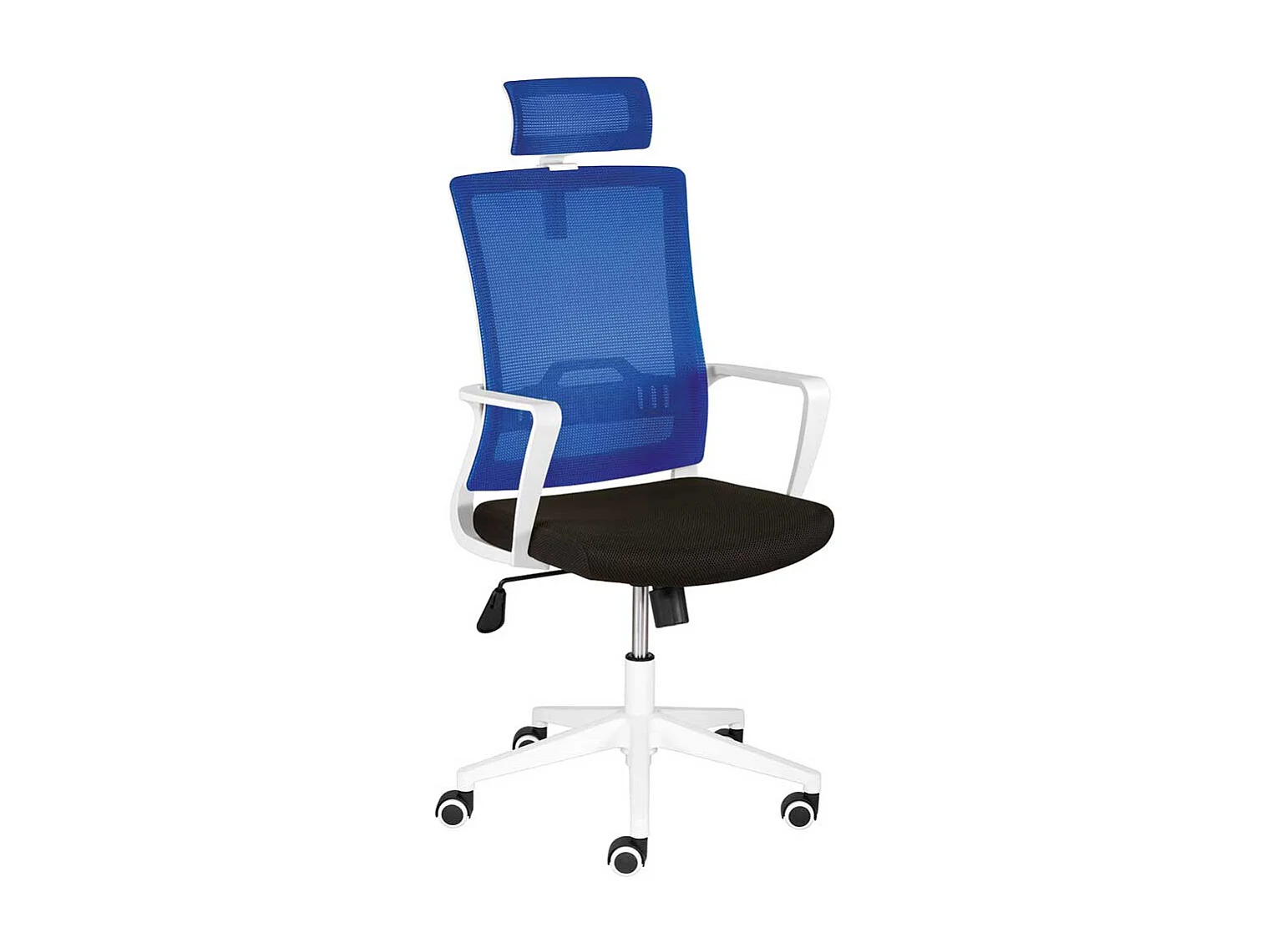 Schreibtischsessel in Blau und schwarz Lendenwirbelstütze