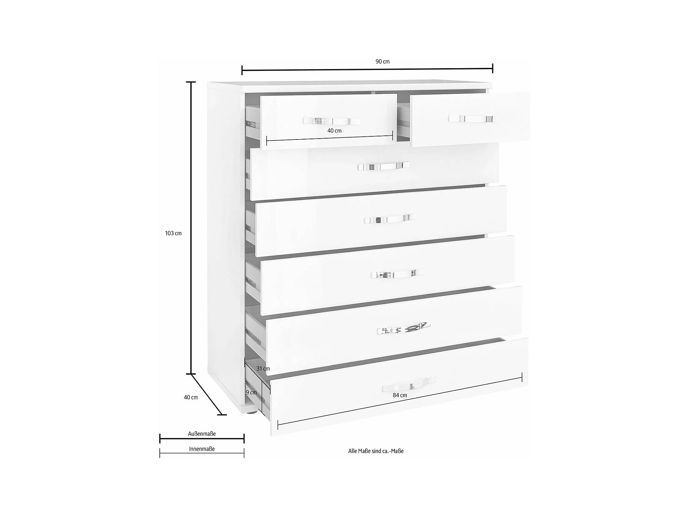 SCHUBKASTENKOMMODE Trio weiß / weiß Hochglanz 90 / 40 / 103cm