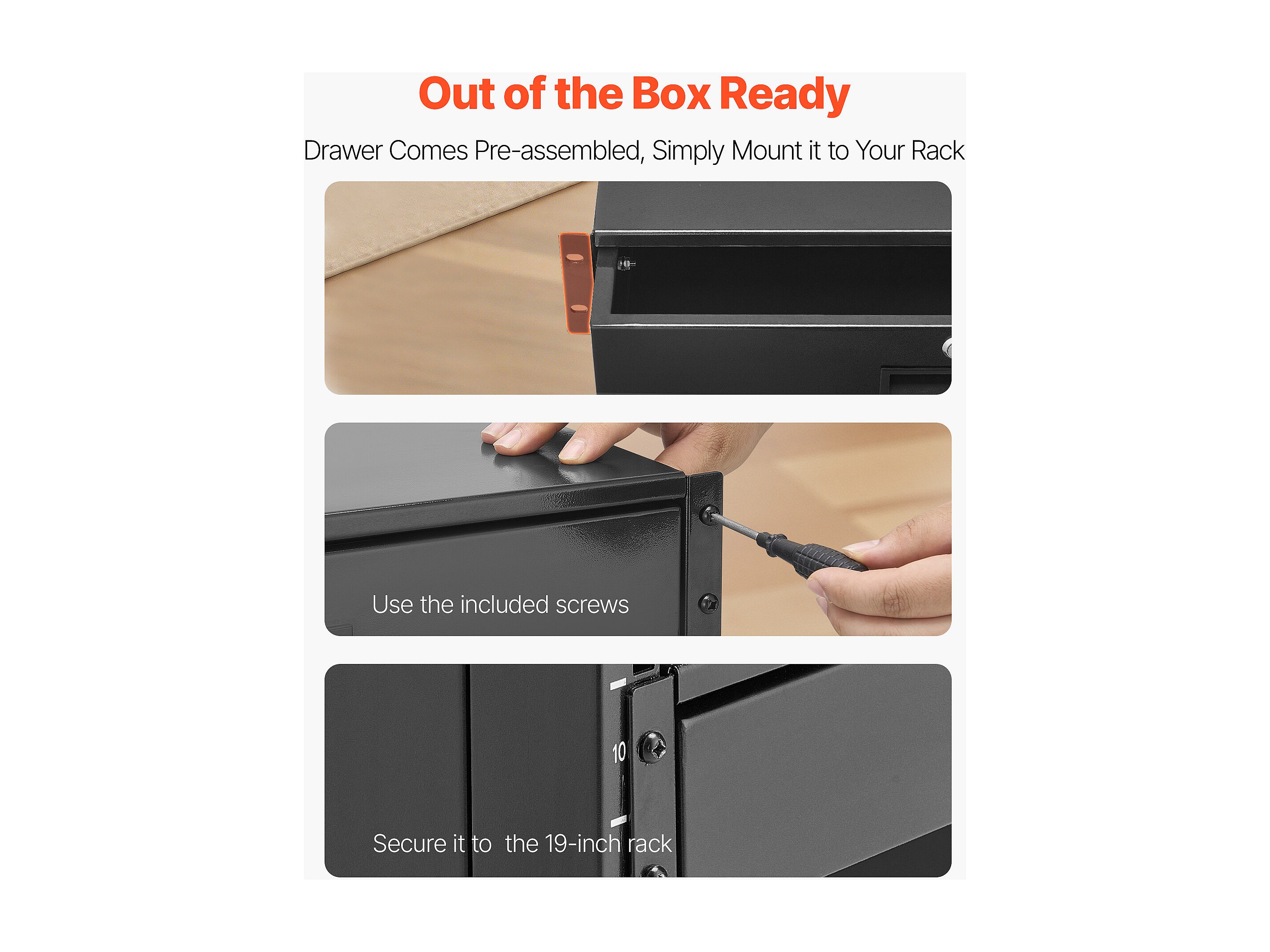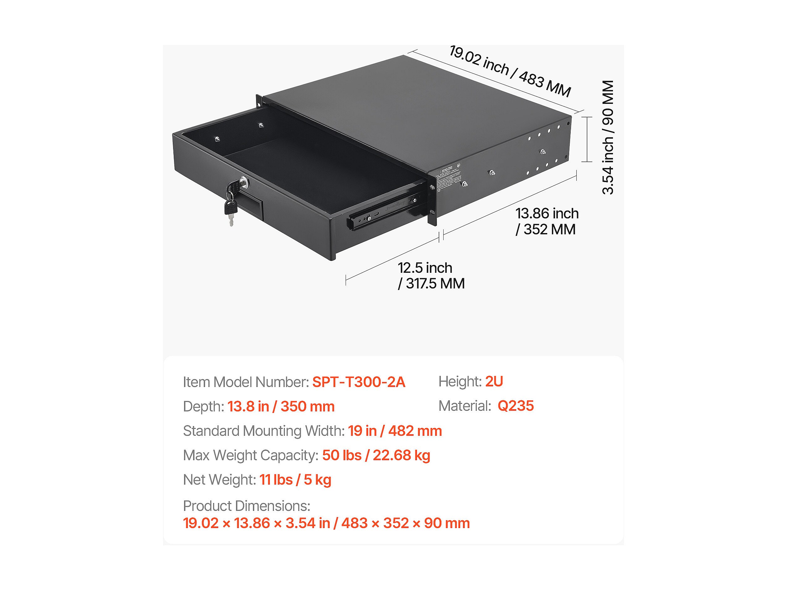 Schublade Rack 2U SucceBuy, Schublade Rackbar Verriegelbar, Belastung 22,68 kg, Tiefe 35cm, mit Löchern für Kabelmanagement, Montagebreite 48.2 cm