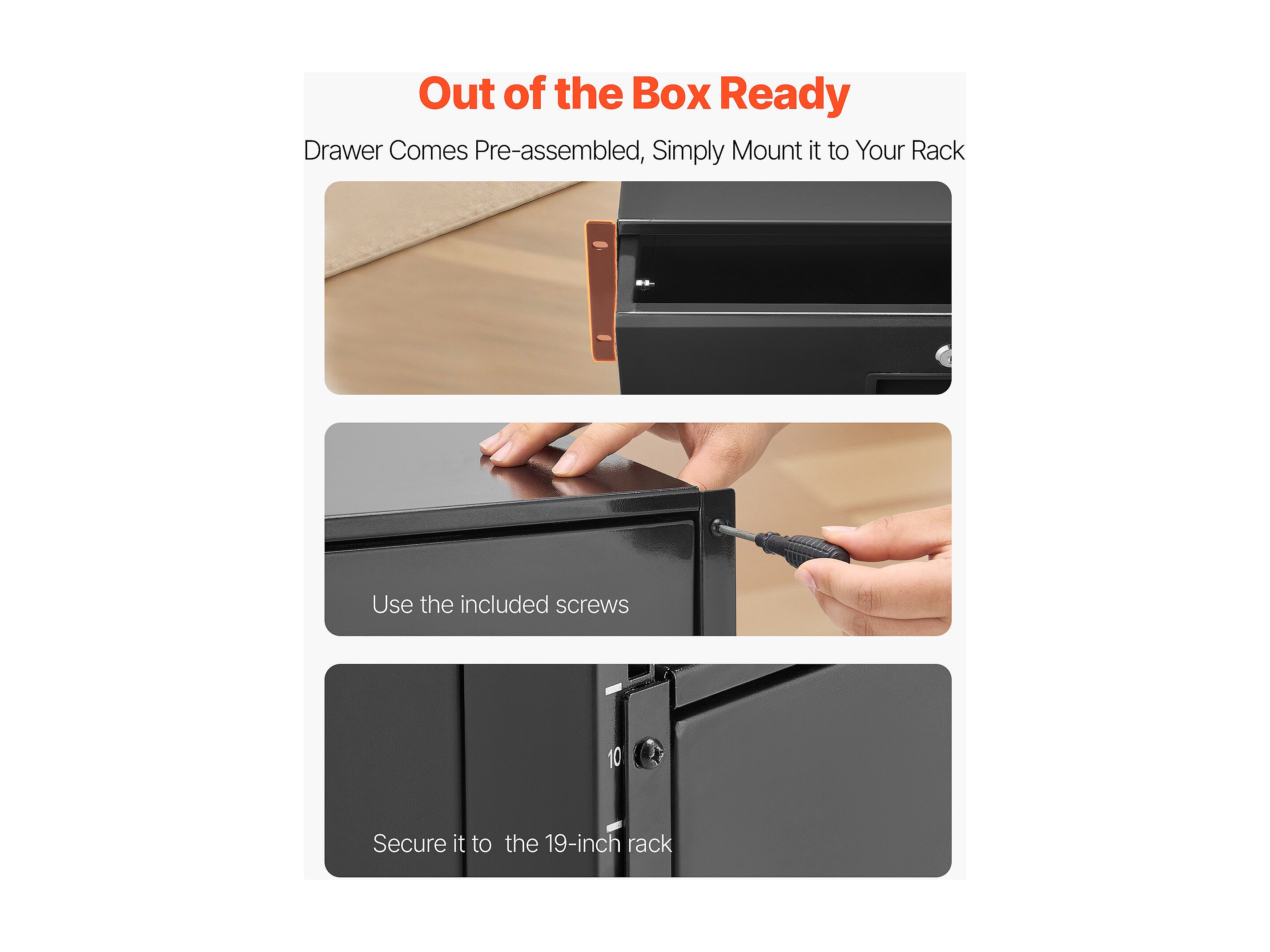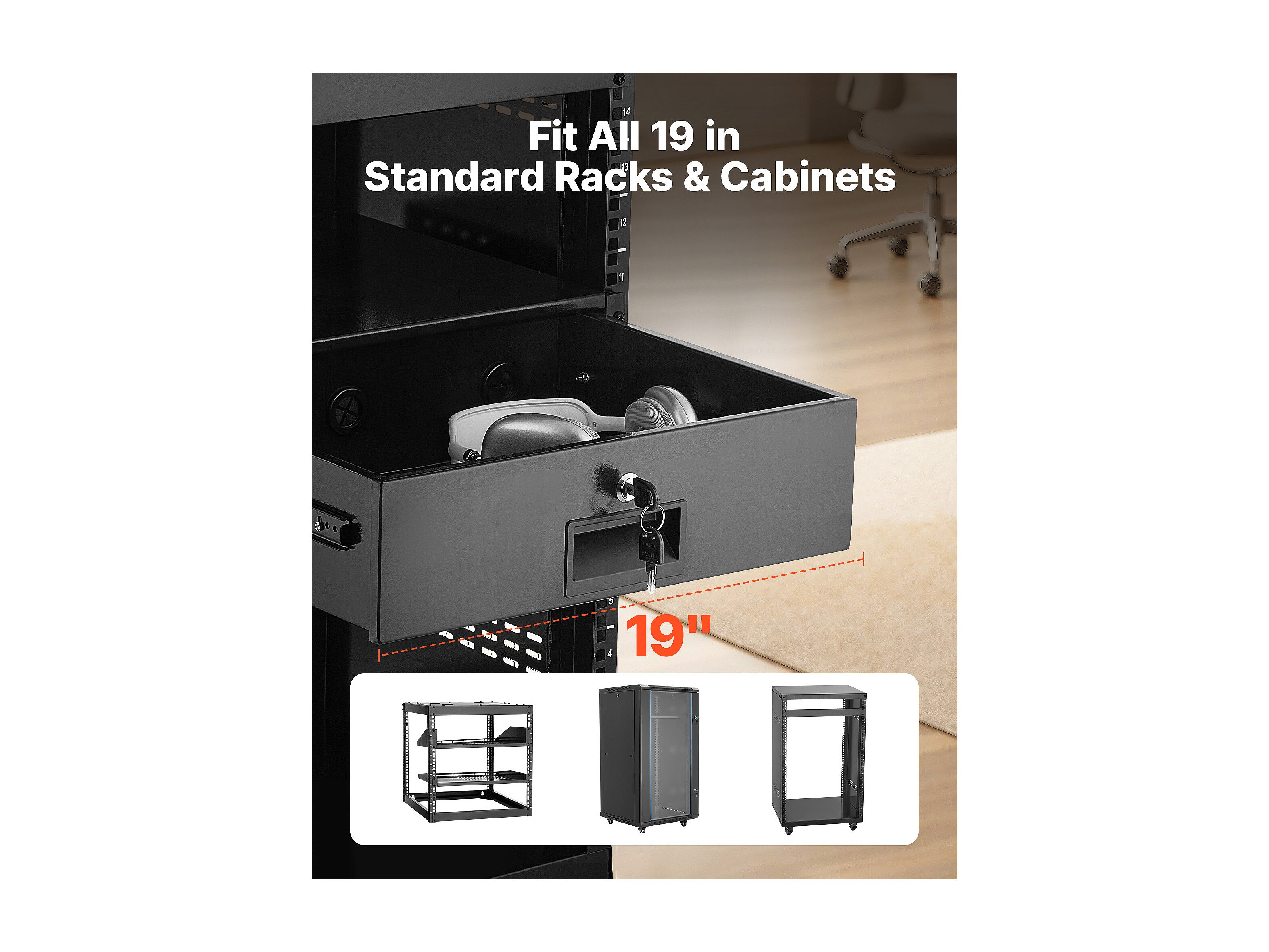 Schublade Rack 3U SucceBuy, Schublade Rackbar Verriegelbar, Belastung 22,68 kg, Tiefe 35cm, mit Löchern für Kabelmanagement, Montagebreite 48.2 cm