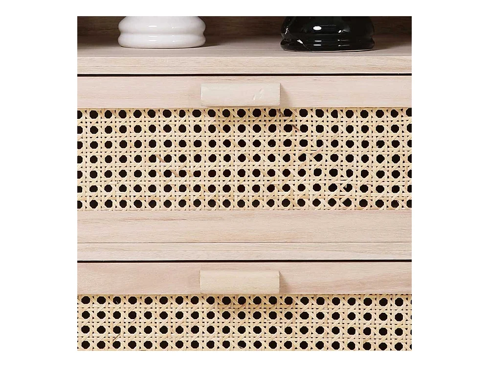 Schubladen Kommode in Holz Naturfarben Rattan Front