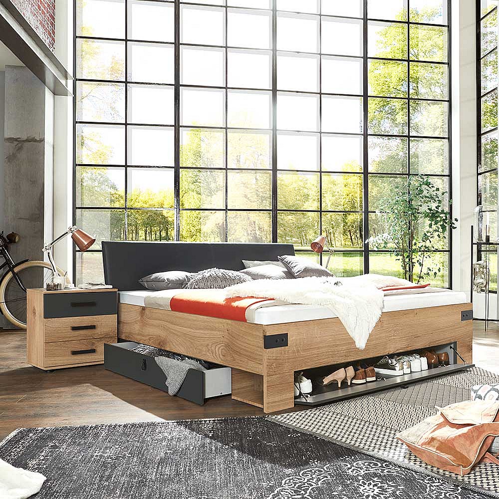 Schubladenbett im Industry und Loft Stil Made in Germany