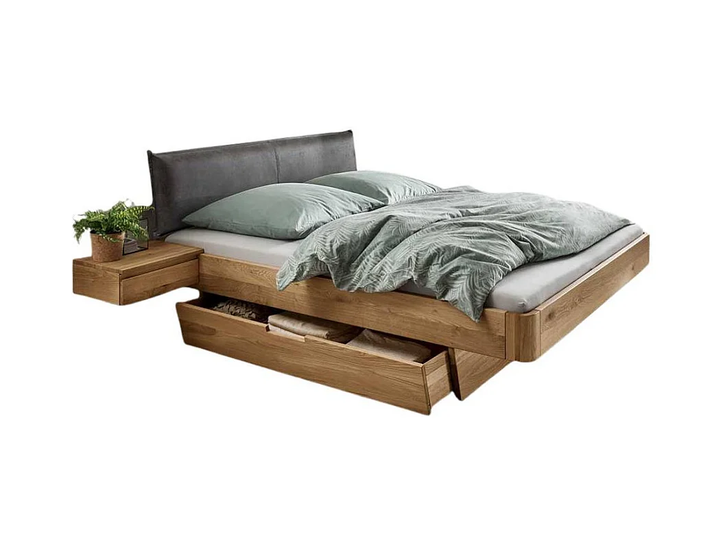 Schubladenbett Vollholzbett inklusive zwei Nachtkommoden geölt (dreiteilig)