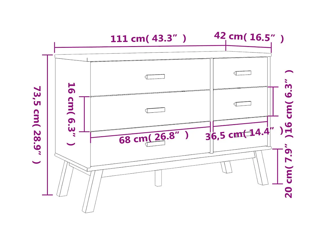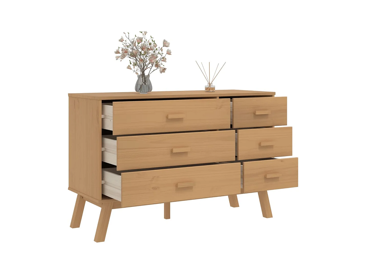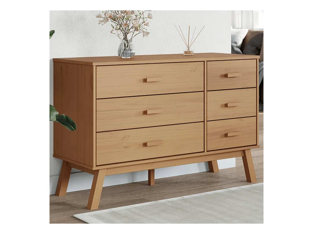 Schubladenschrank OLDEN Braun Massivholz Kiefer