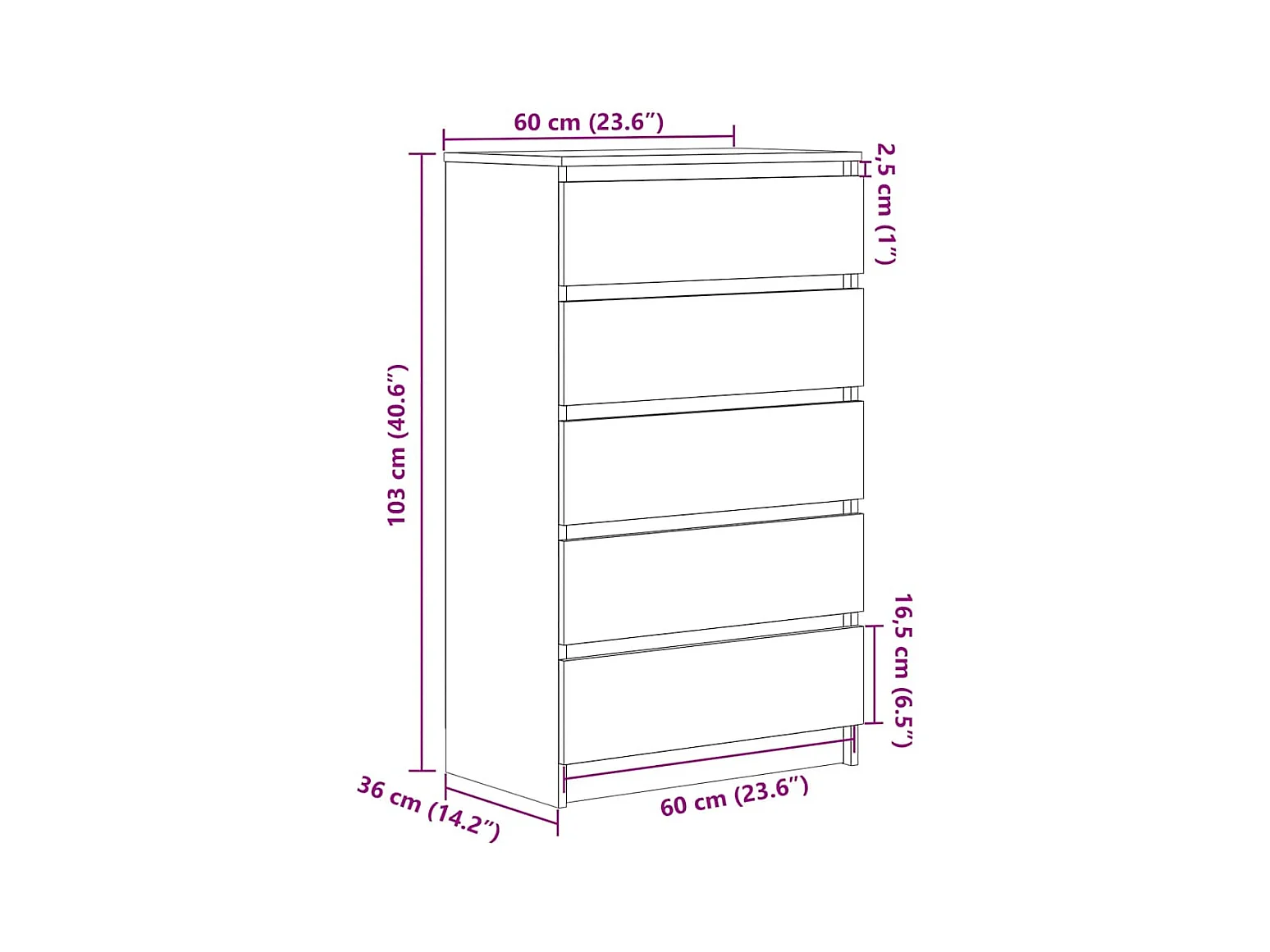 Schubladenschrank Räuchereiche 60x36x103 cm Holzwerkstoff