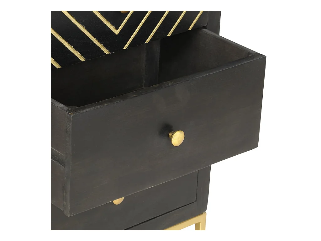 Schubladenschrank Schwarz Golden 45x30x105cm Mangoholz