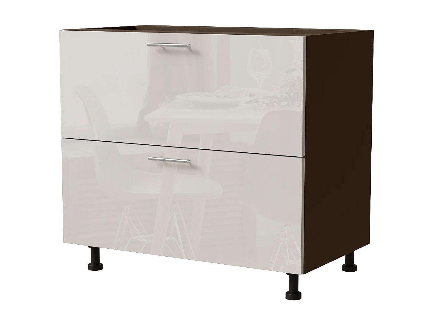 SCHUBLADENUNTERSCHRANK Brerra D2M/90 Korpus lava / Front RAL 9001 creme Hochglanz 90 / 50 / 82cm