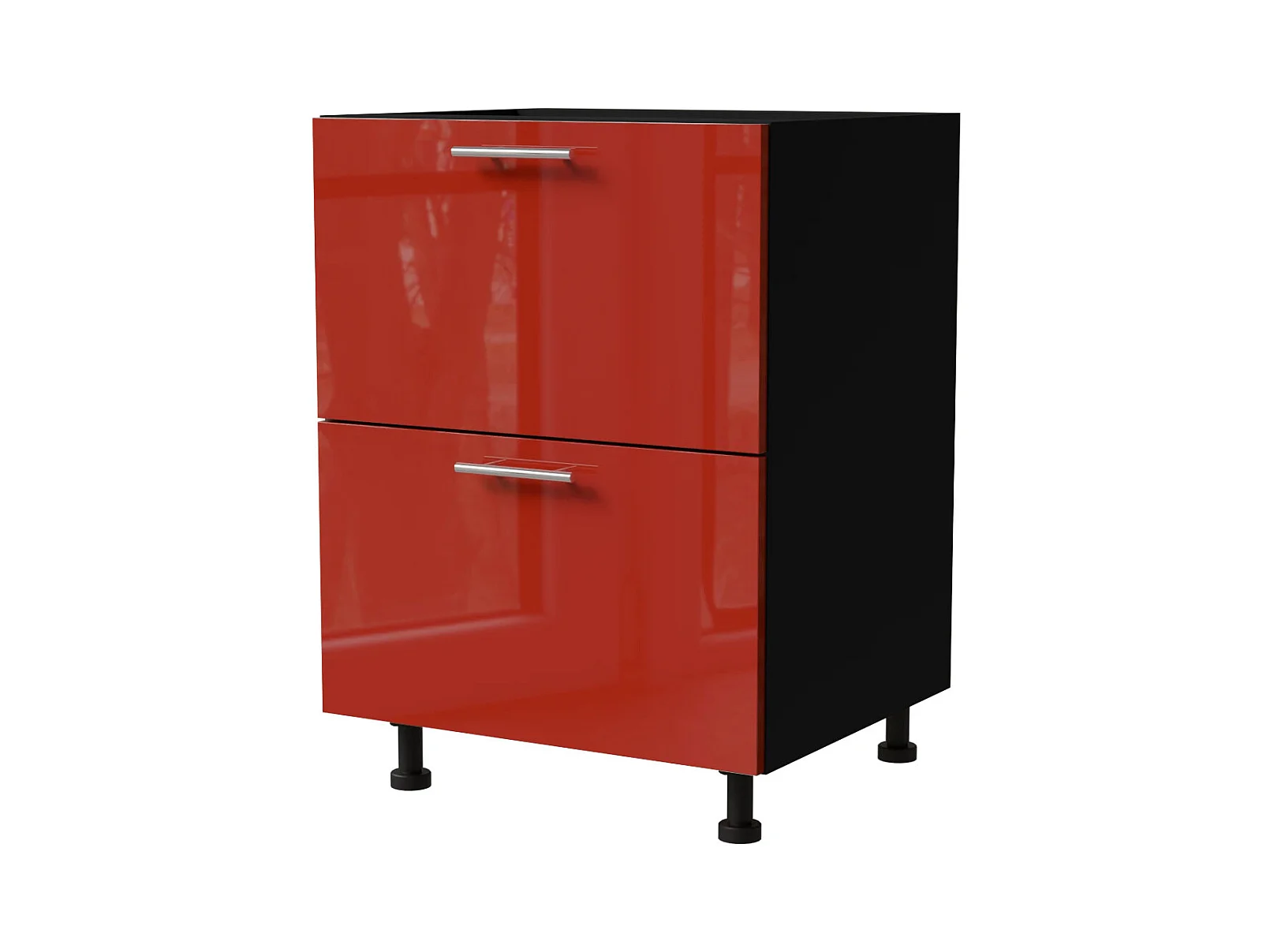 SCHUBLADENUNTERSCHRANK Brerra D2R/60 Korpus schwarz / Front RAL 3002 karminrot Hochglanz 60 / 50 / 82 cm