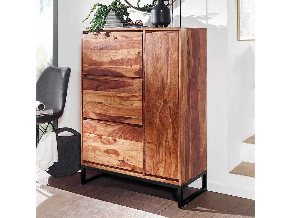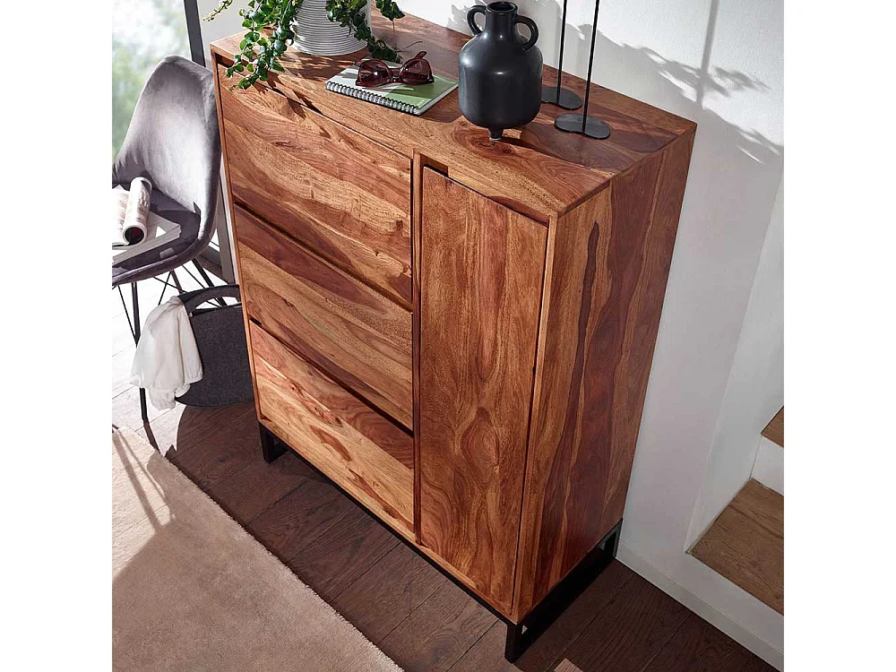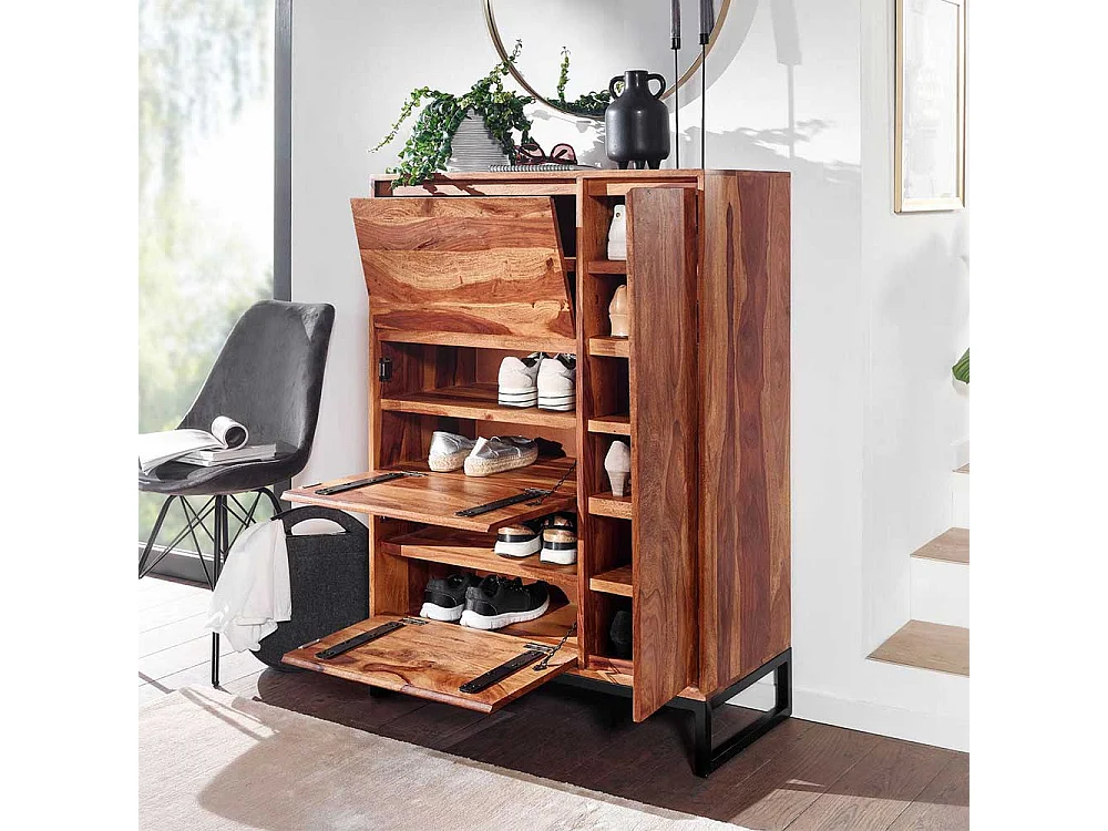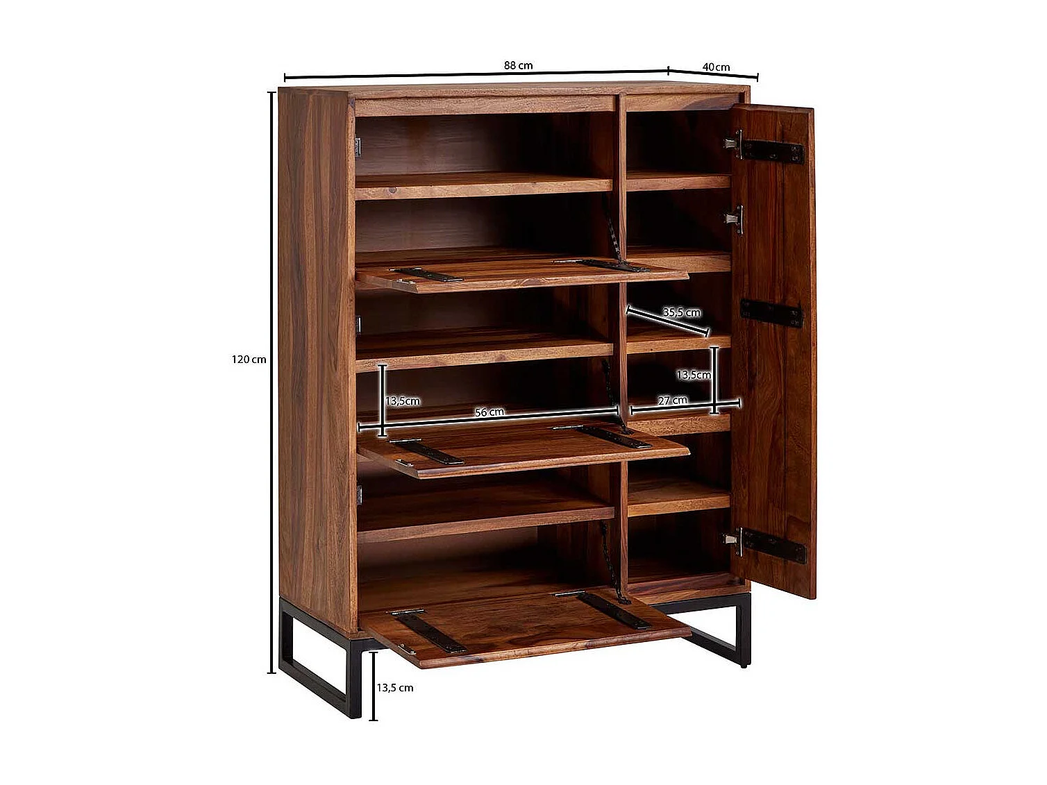 Schuh Schrank aus Sheesham Massivholz Metallbügelgestell