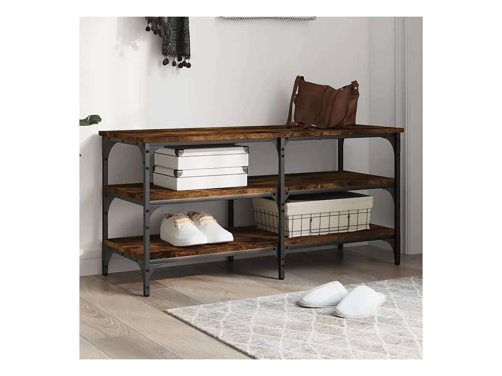 Schuhbank aus geräucherter Eiche, 100 x 38,5 x 49 cm, Holzwerkstoff