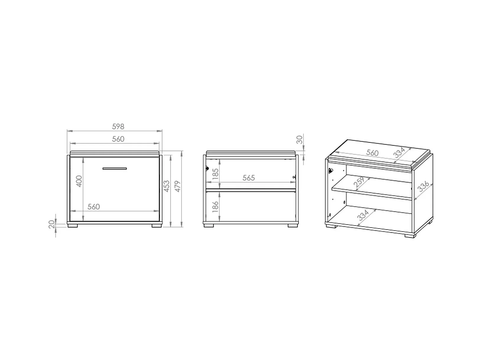 SCHUHBANK Caro Sonoma Eiche hell / schwarz 60 / 34 / 48cm