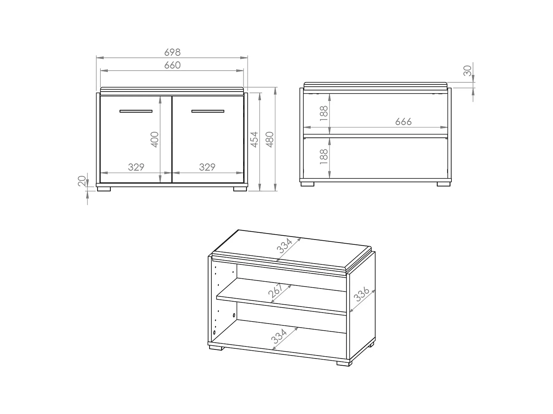 SCHUHBANK Caro Sonoma Eiche hell / schwarz 70 / 34 / 48cm