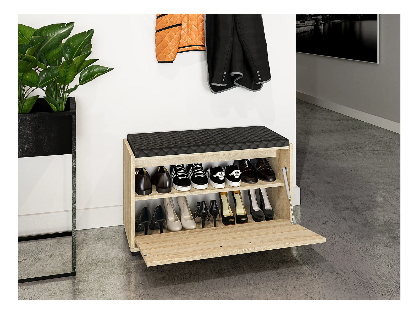 SCHUHBANK Caro Sonoma Eiche hell / schwarz 80 / 34 / 48cm