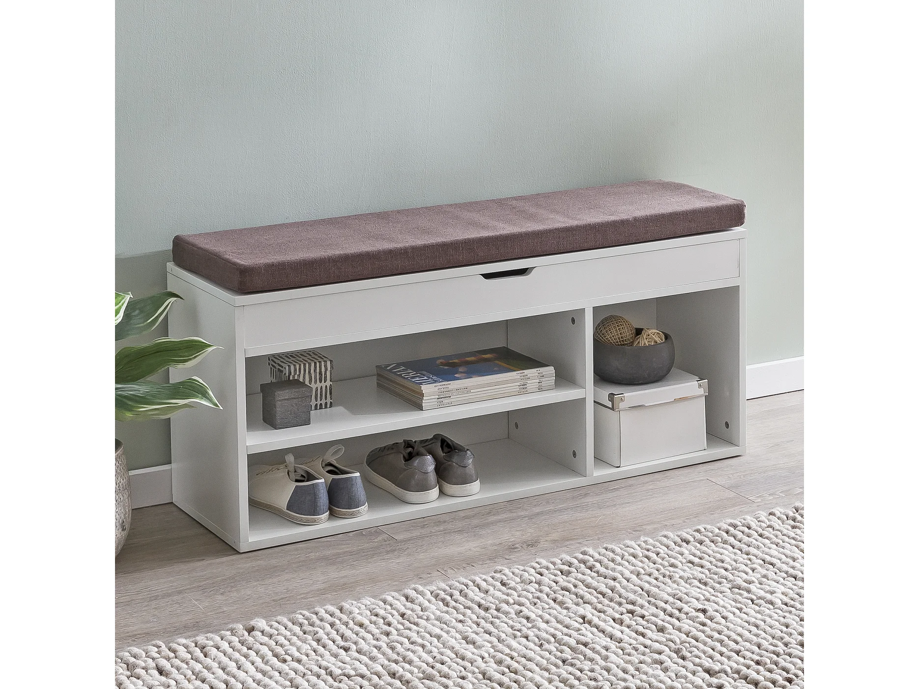 Schuhbank WL5.345 mit Sitzfläche Garderoben-Bank Holz 104x51x32 cm Weiß, Holzbank klein