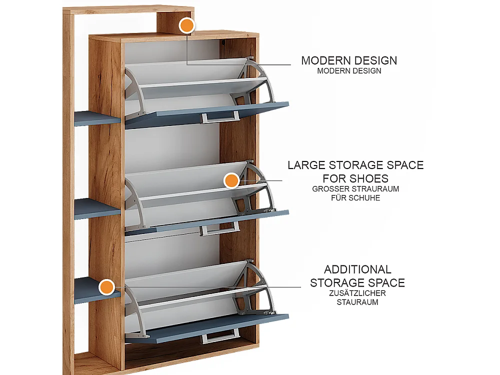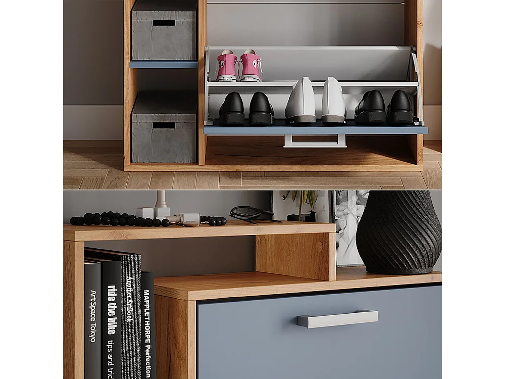Schuhkipper goldkraft eiche/blau 80x24.2x128.3 orlando