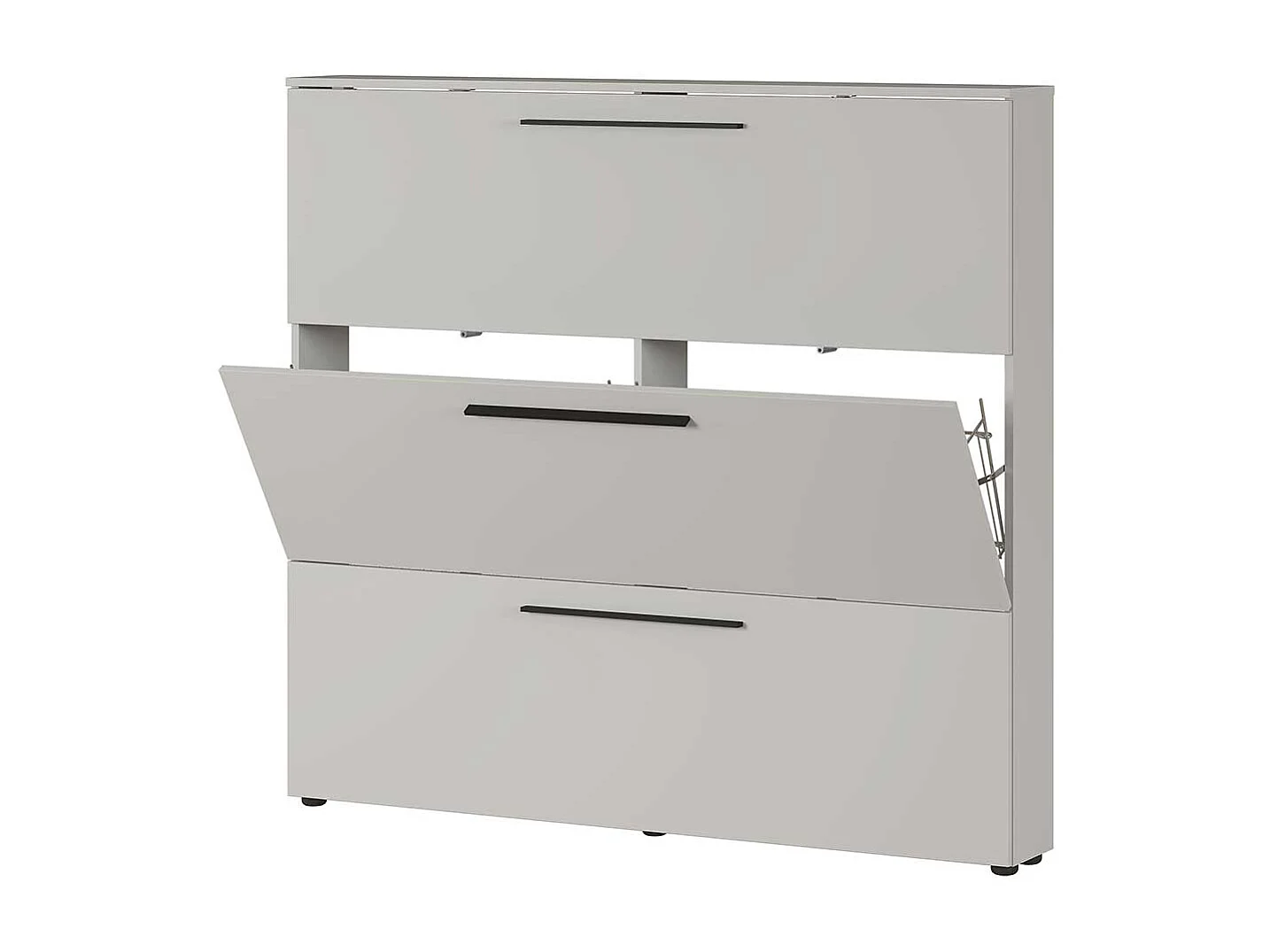 Schuhklappenschrank in Hellgrau Schuhkörben aus Metall