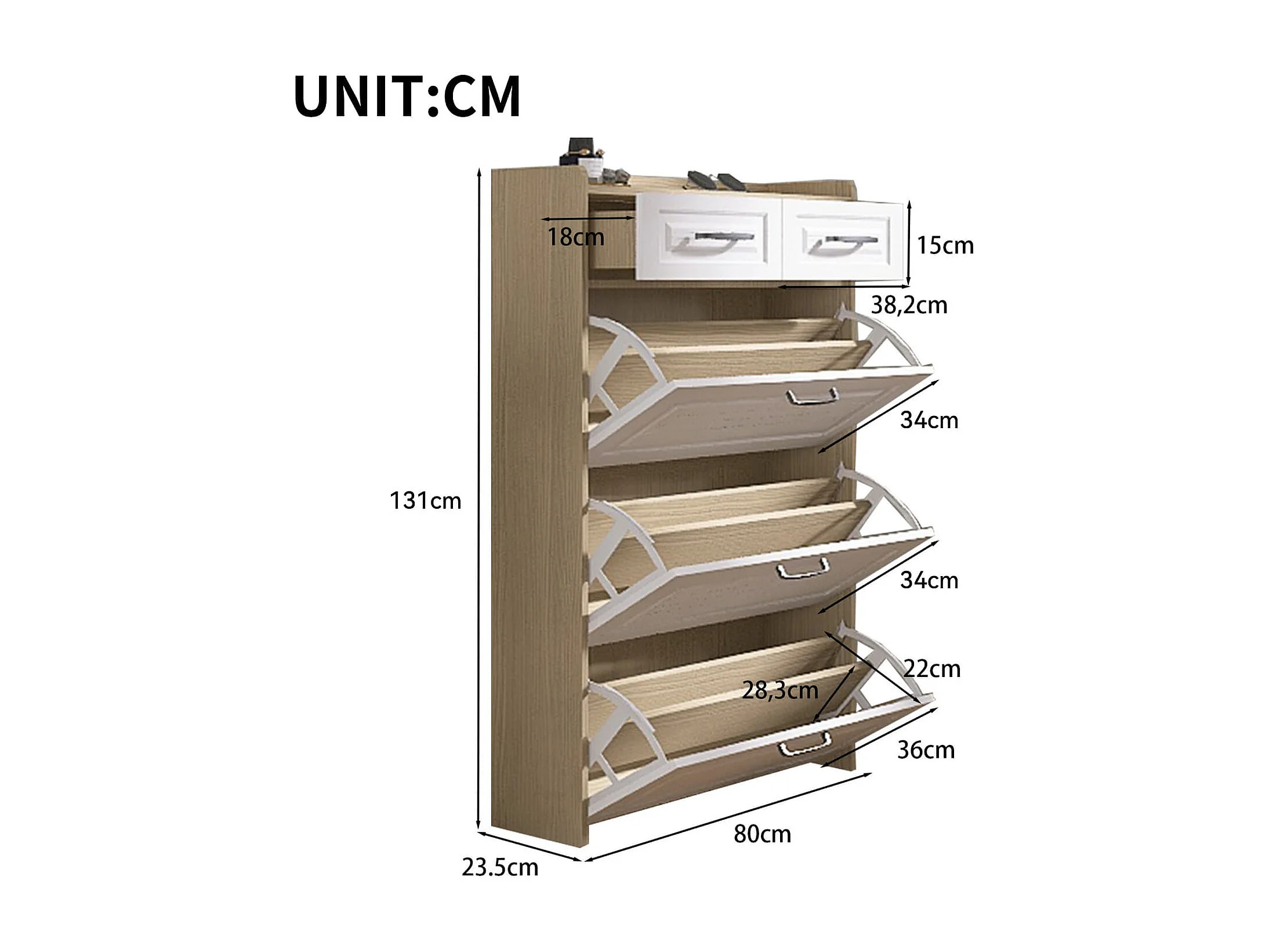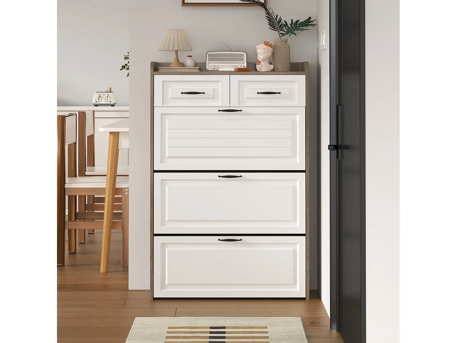 Schuhkommode mit drehbarem Schuhschrank,bestehend aus drei großen Klappen und zwei Schubladen,Holzschuhschrank,Schuhregal,Geeignet für Eingangsbereich