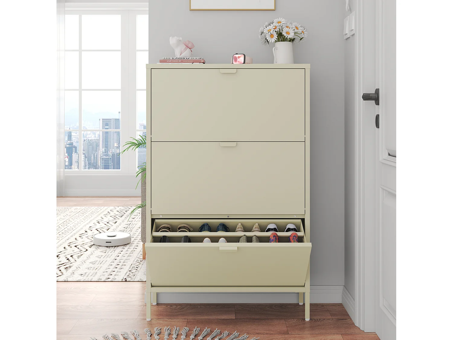 Schuhmöbel mit 3 Türen aus weißem Metall MARION