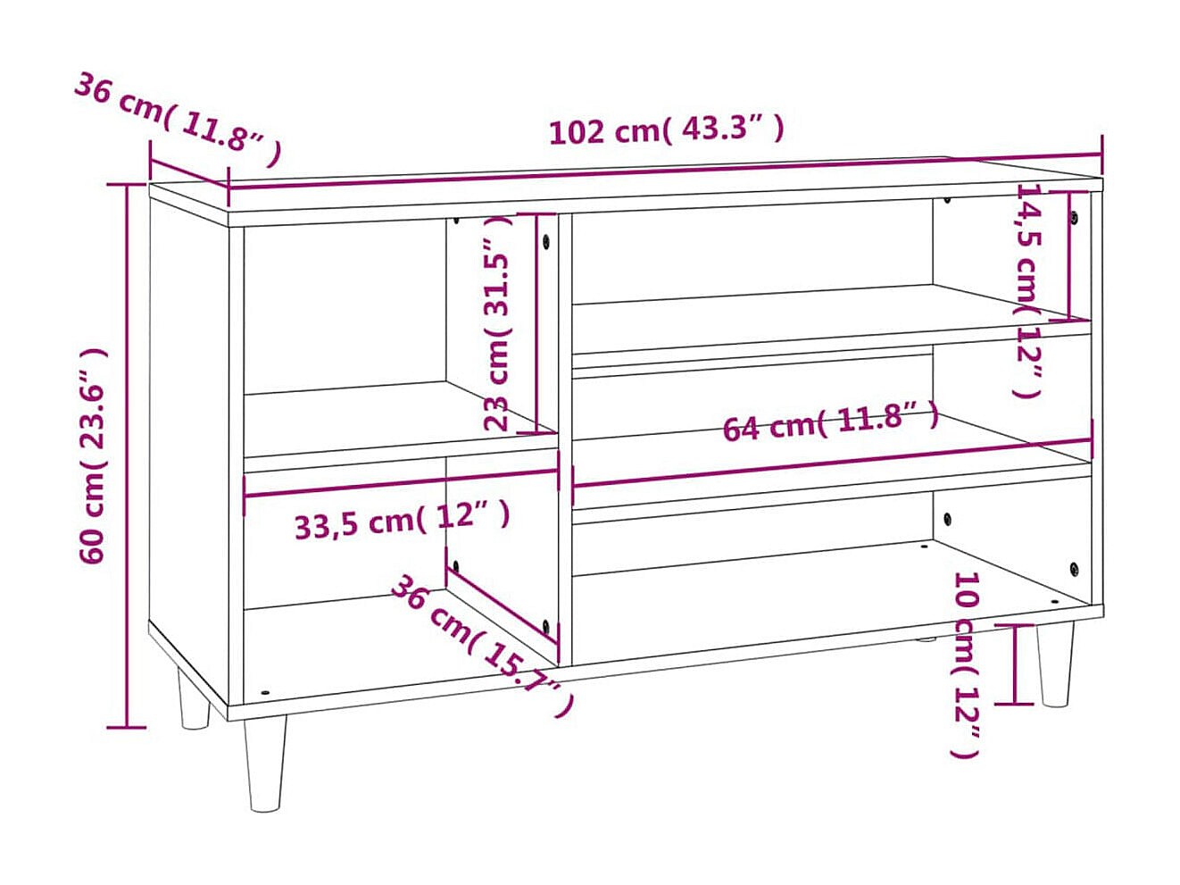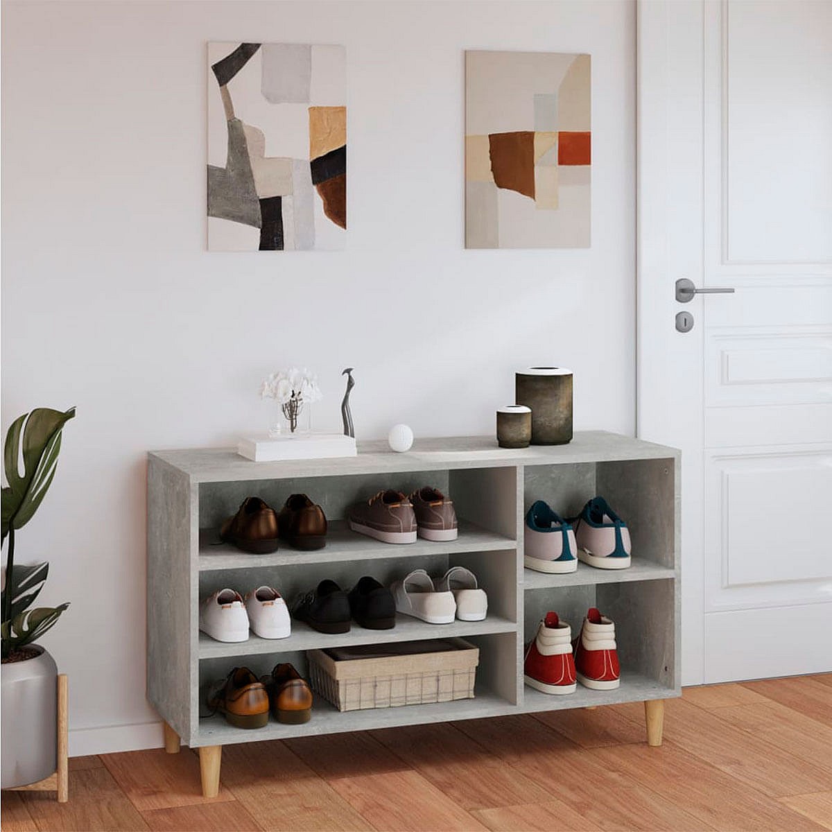 Schuhregal Betongrau 102x36x60 cm Holzwerkstoff
