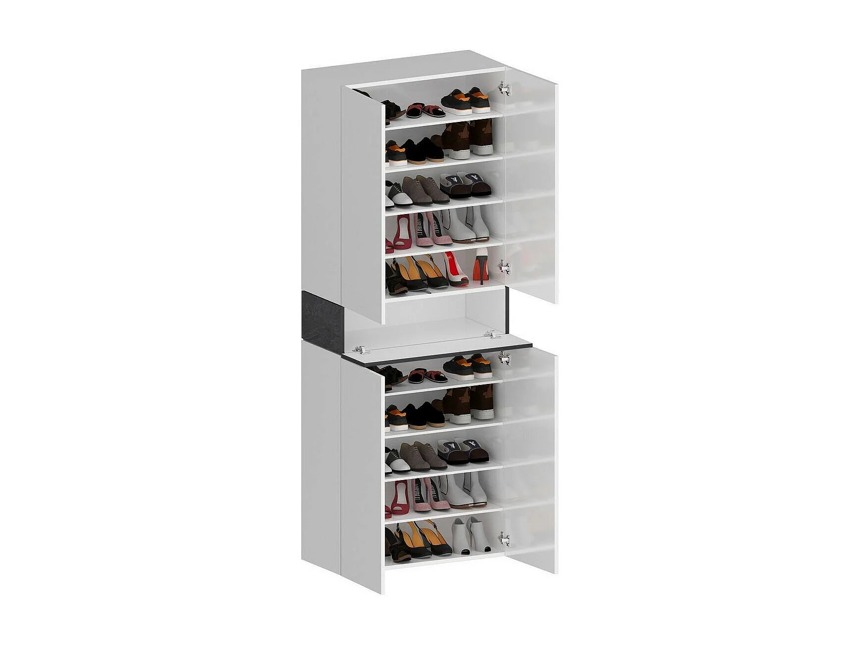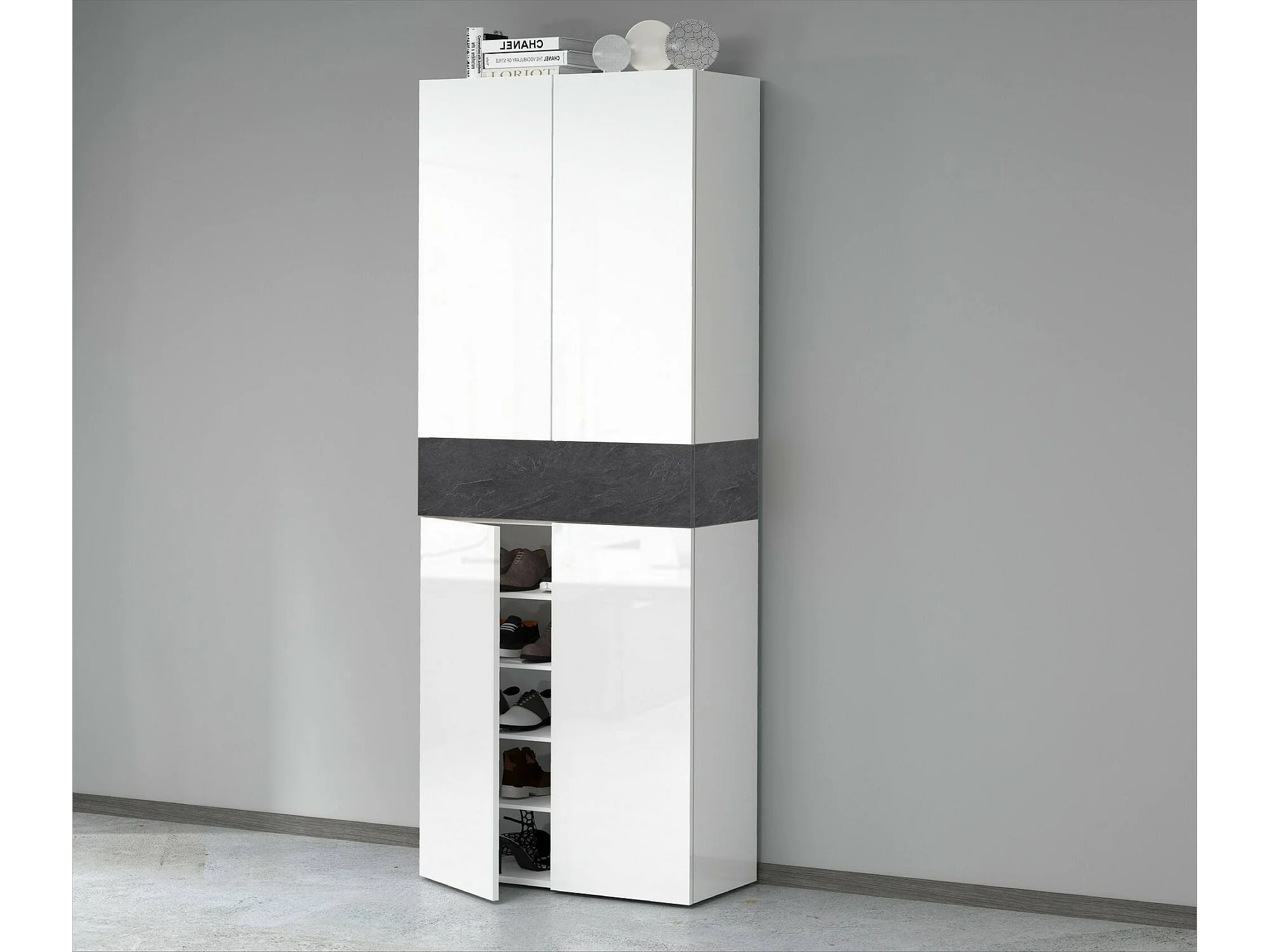 Schuhregal Dcandelar, platzsparendes schuhregal mit 5 türen, multifunktionale eingangsgarderobe, 76x38h200 cm, Weiß und Schiefer