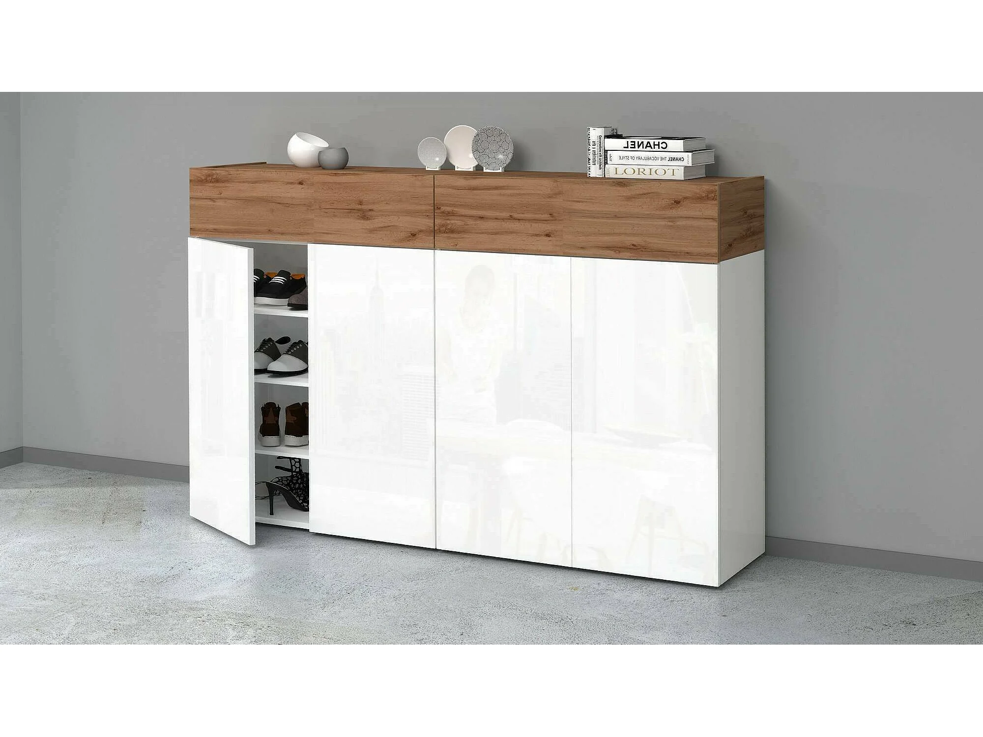 Schuhregal Dcandrev, platzsparendes schuhregal mit 6 türen, multifunktionale eingangsgarderobe, 154 x 38 x 100 cm, weiß und eiche