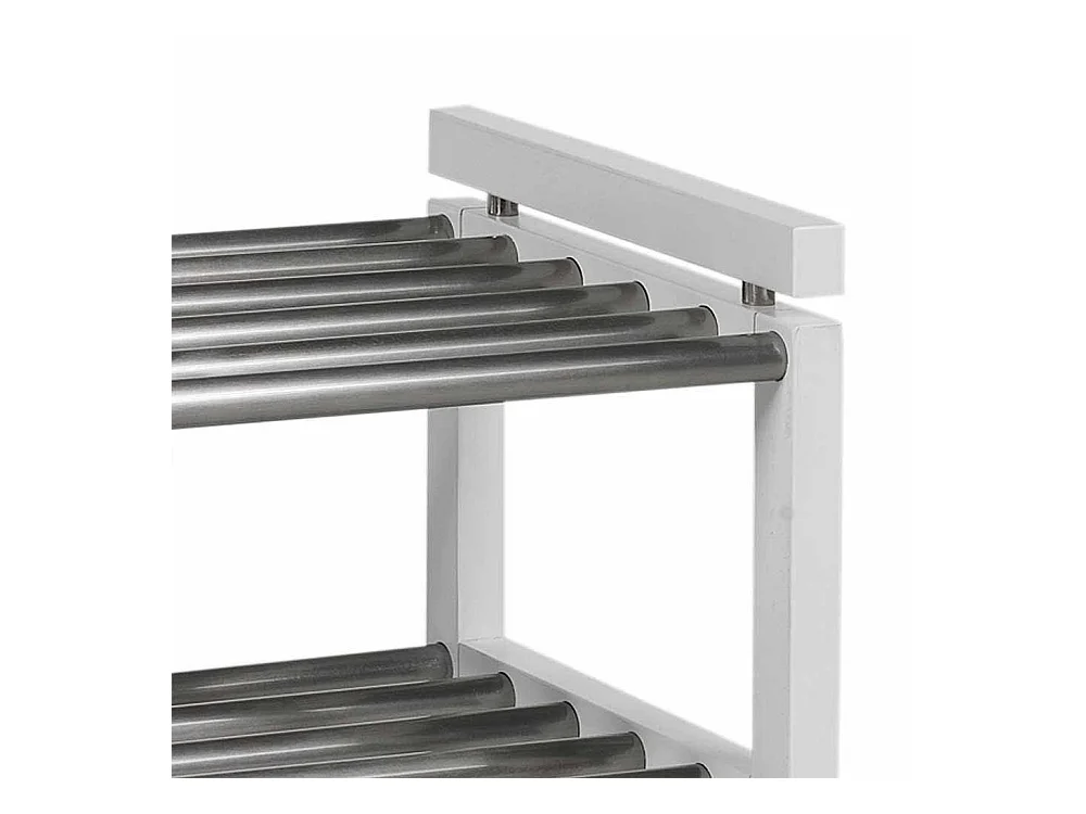 Schuhregal in Weiß Eiche massiv Edelstahl
