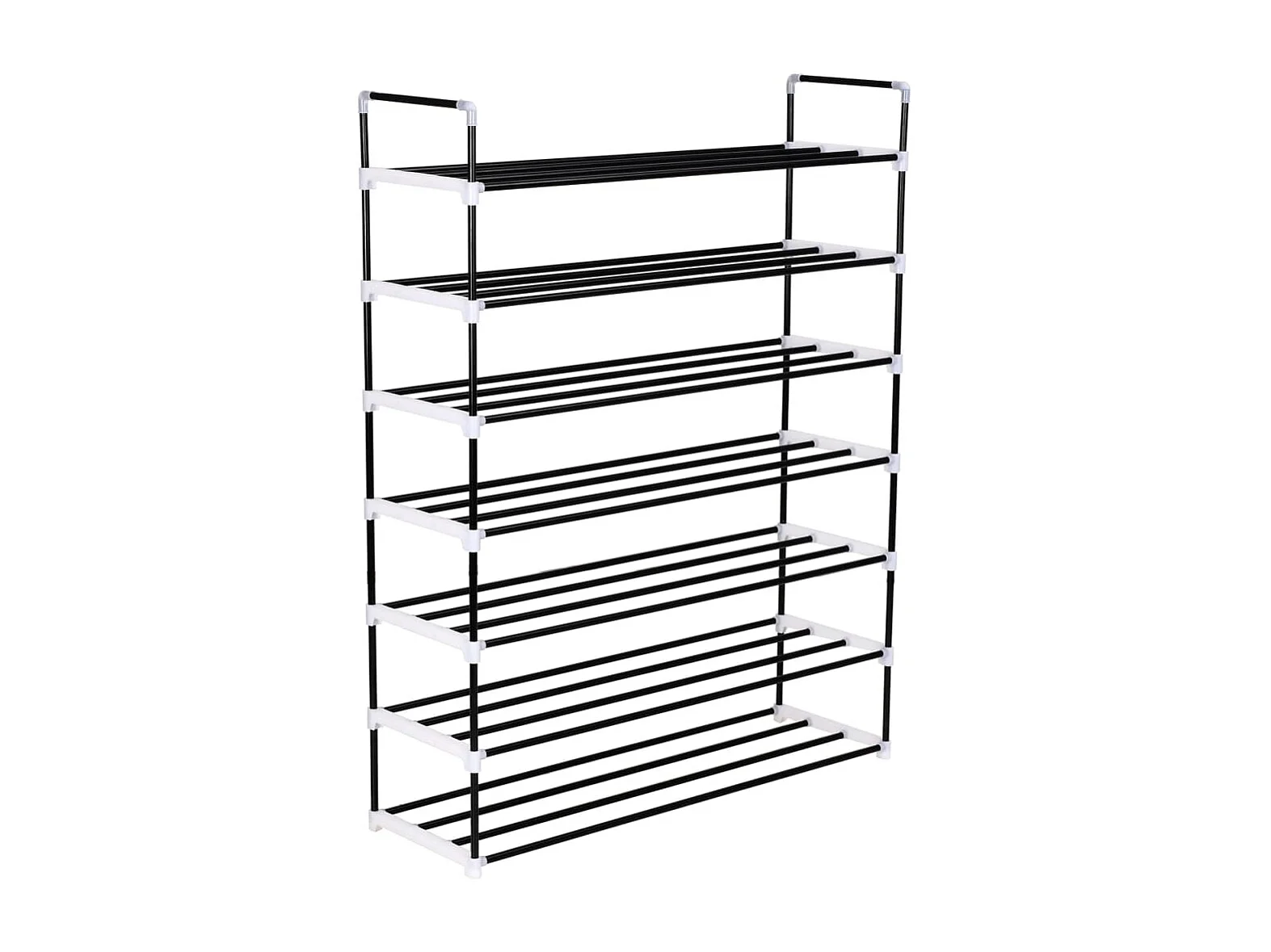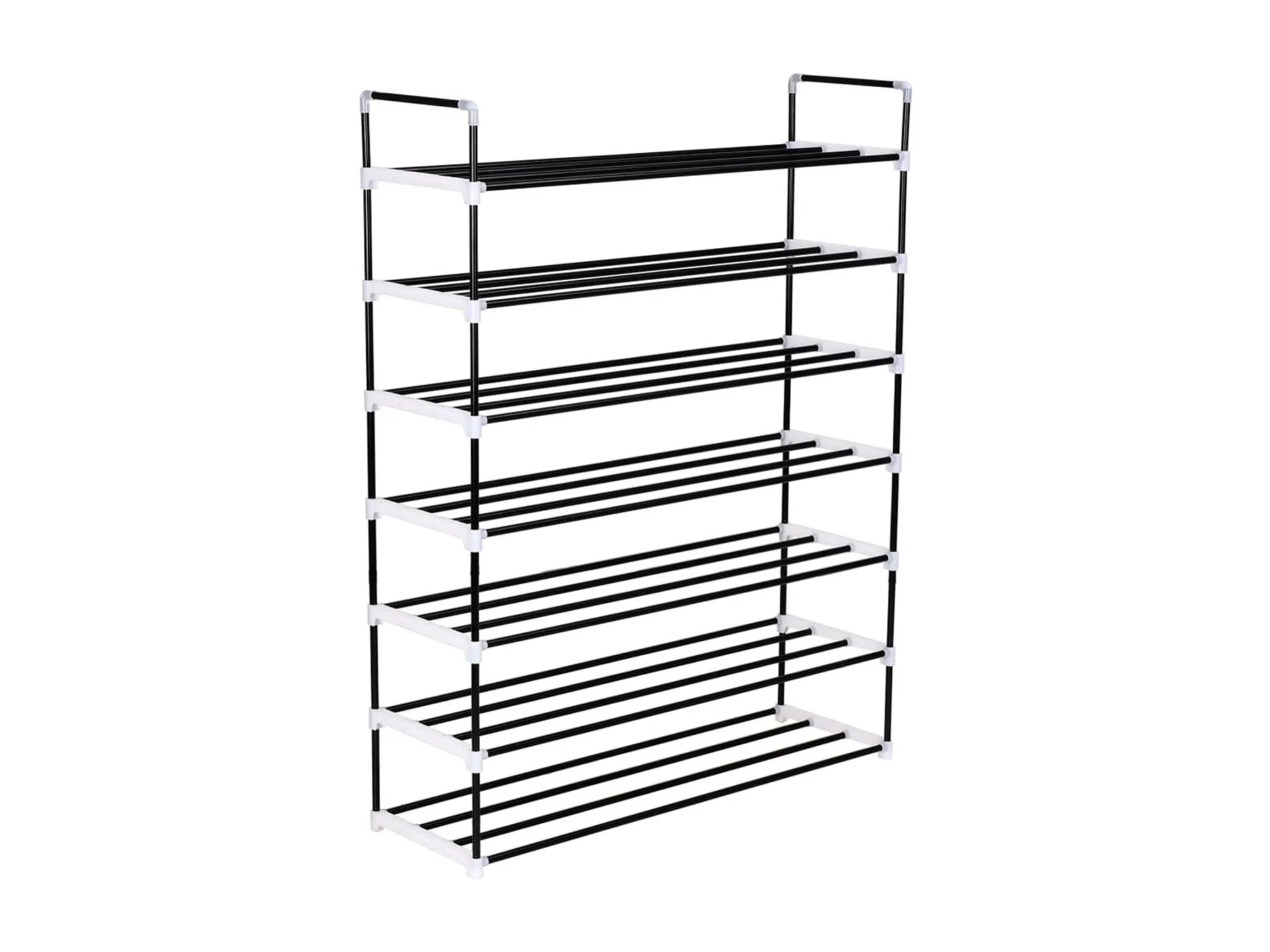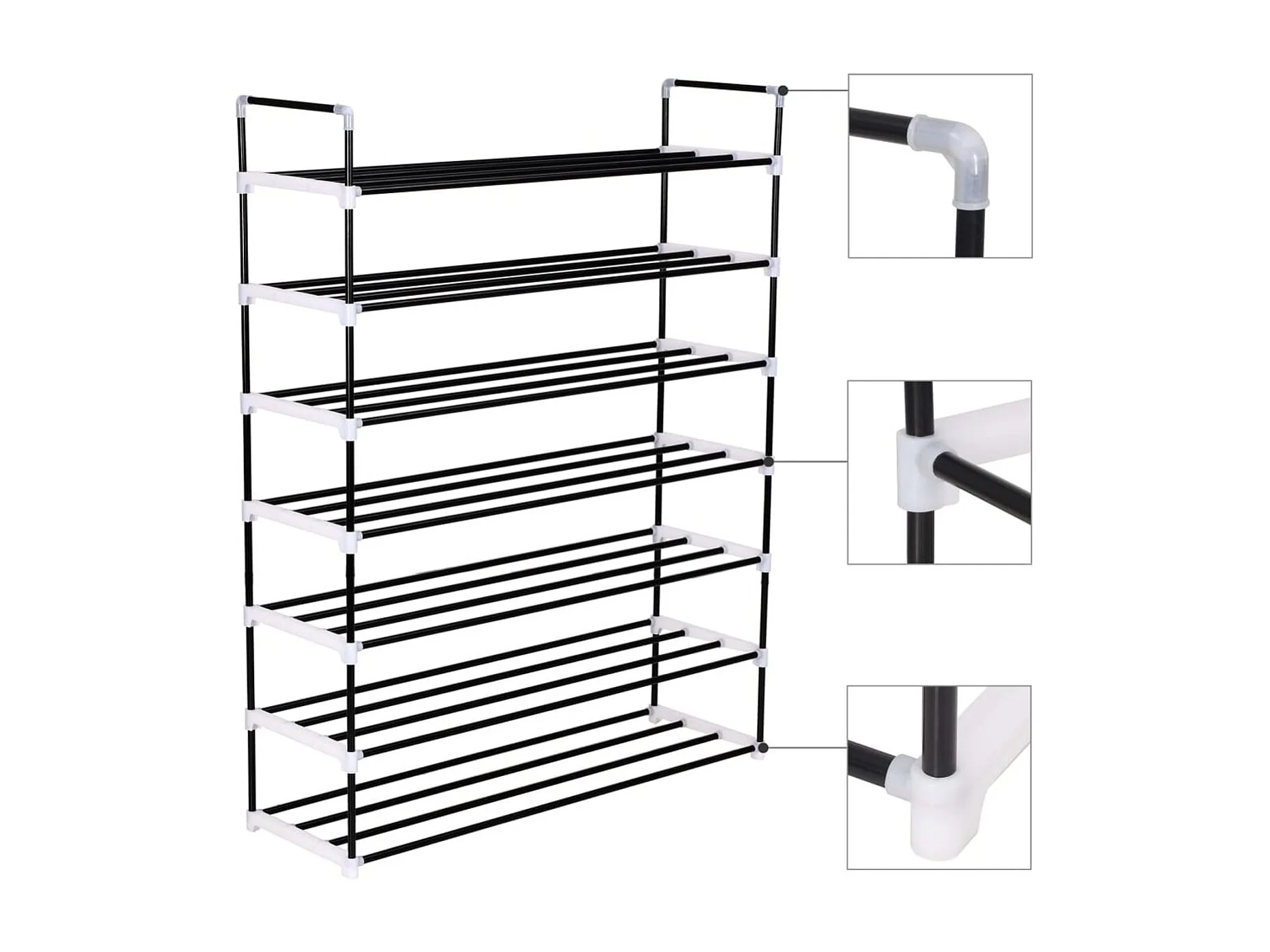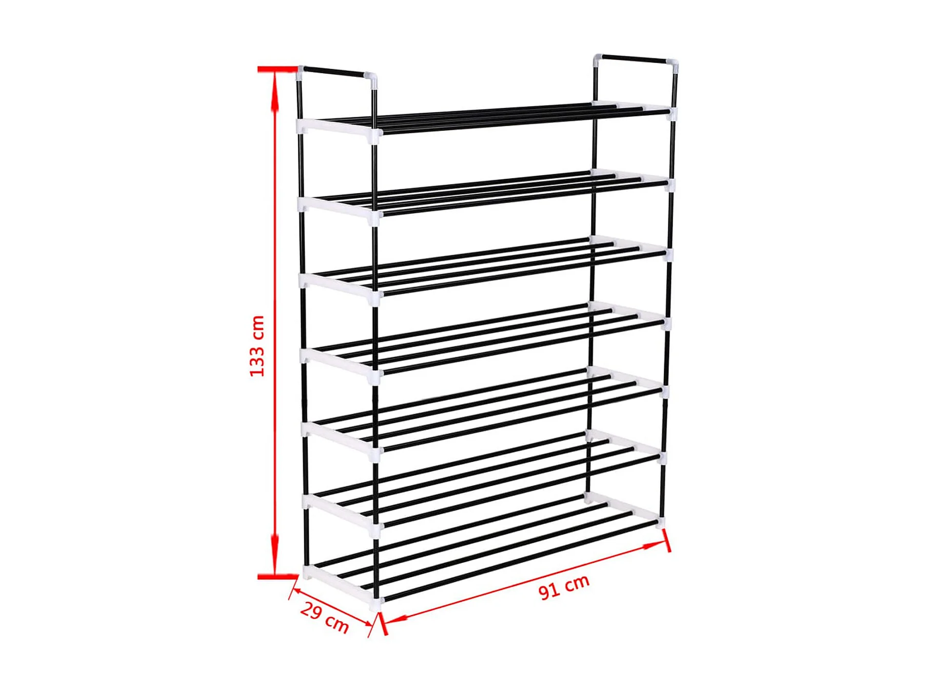Schuhregal mit 7 Etagen Metall und Kunststoff Schwarz