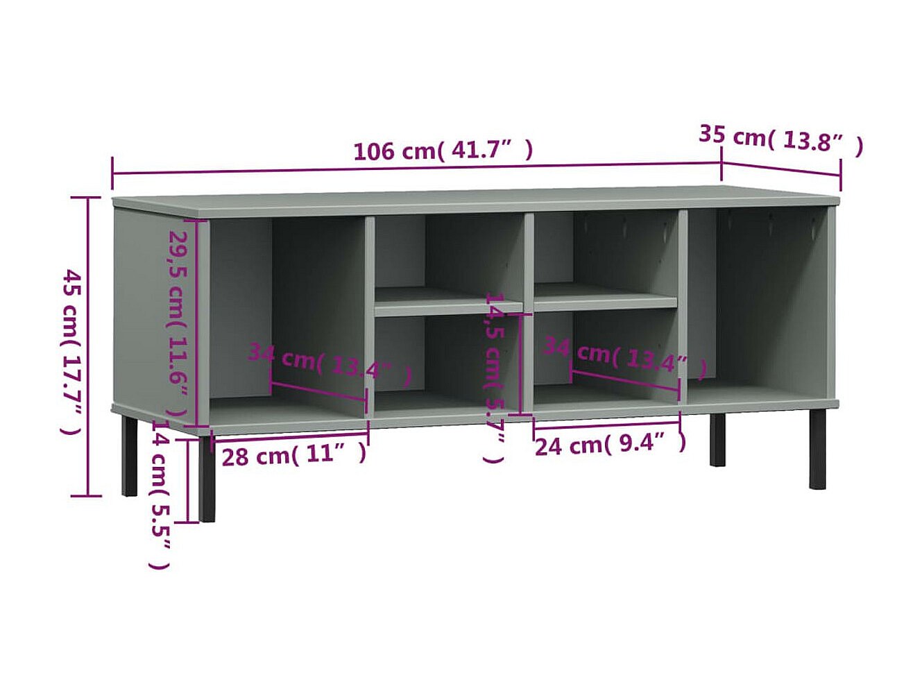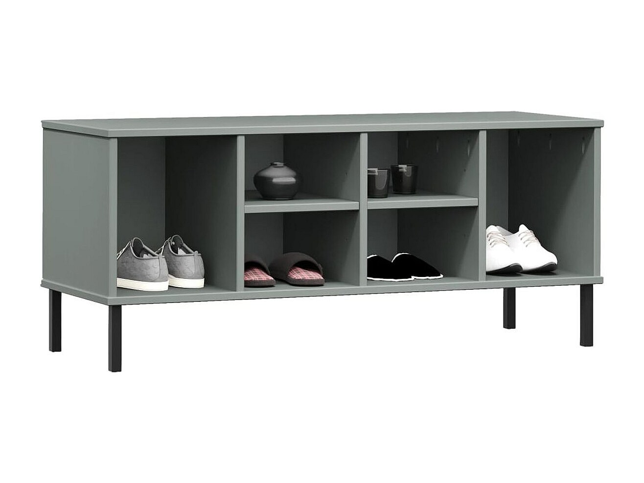 Schuhregal OSLO mit Metallbeinen Grau 106x35x45 cm Massivholz