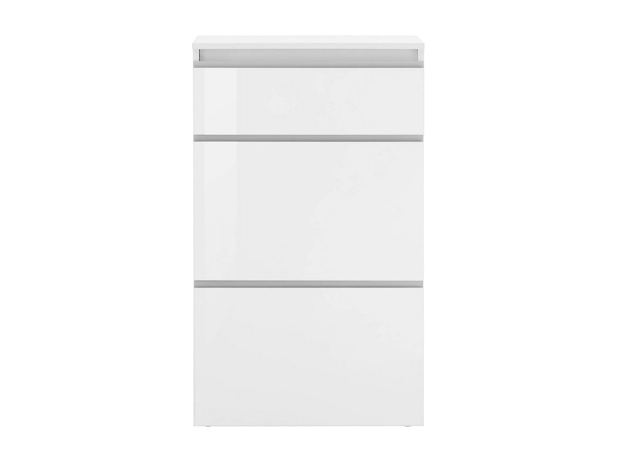Schuhregal Paco, Mehrzweckschrank mit 2 Türen und 1 Falttür, Schuhregal für den Eingangsbereich, 100 % Made in Italy, 60 x 27 x 108 cm, glänzend weiß,